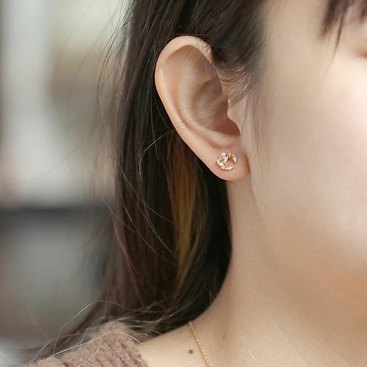 Emotional Factory 925 Sterling Silver 14K Gold Plated Gemstone Blue Quartz Stone Moon Star Earrings