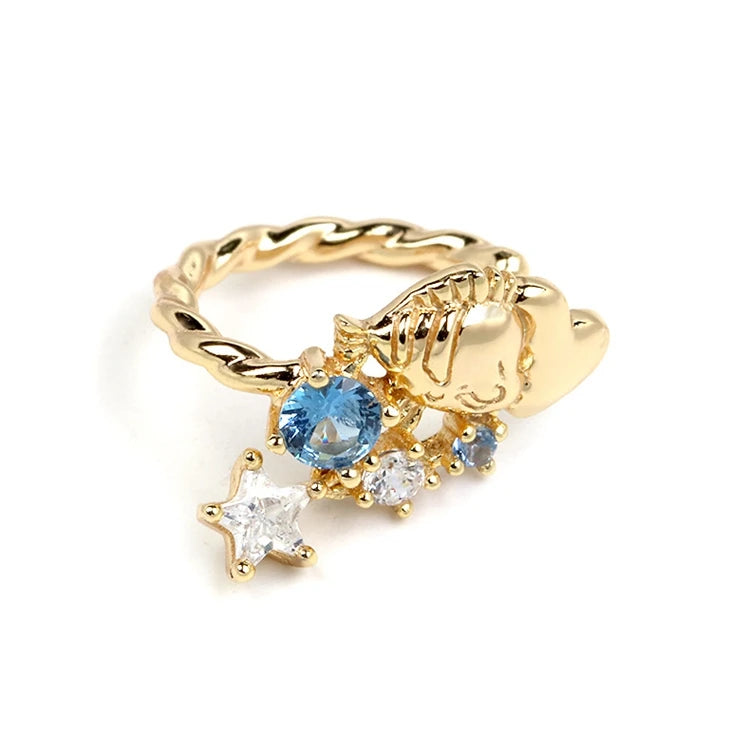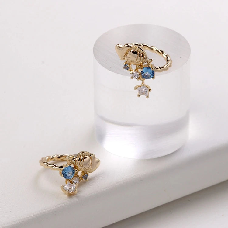 Emotional Factory 925 Sterling Silver 14K Gold Plated Gemstone Blue Spinel Small Fish Starfish Earrings