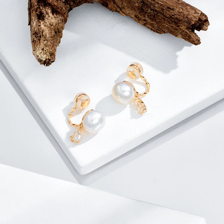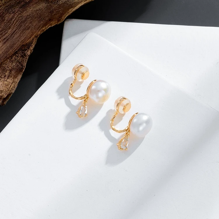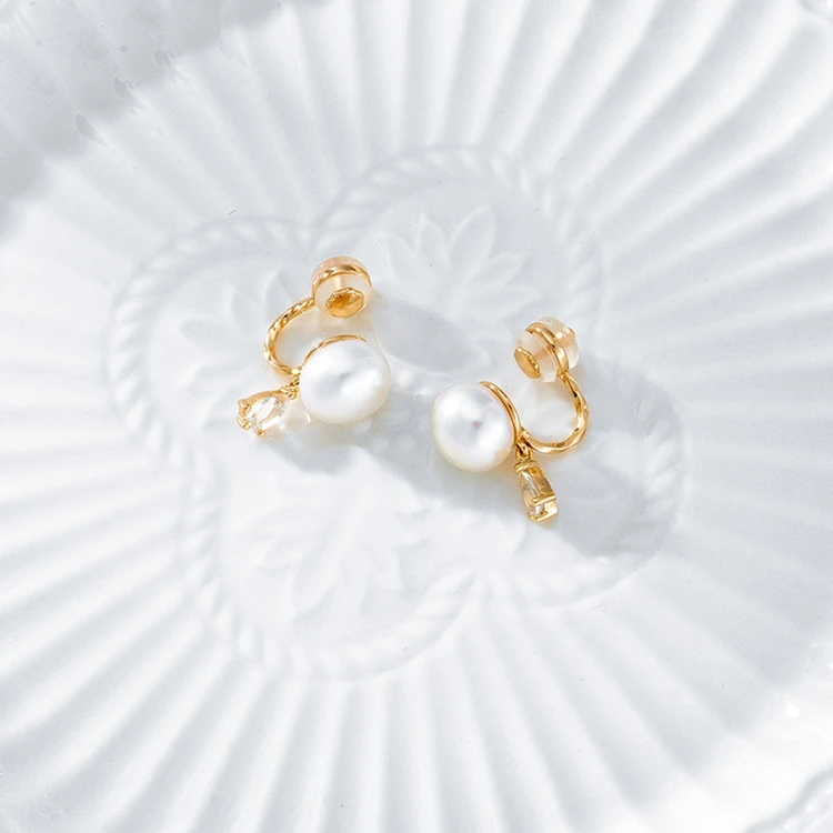 Emotional Factory 925 Sterling Silver 14K Gold Plated Gemstone Bread Beads White Topaz Ear Clip Earrings Emotional Factory 925 Sterling Silver 14K Gold Plated Gemstone Bread Beads White Topaz Ear Clip Earrings