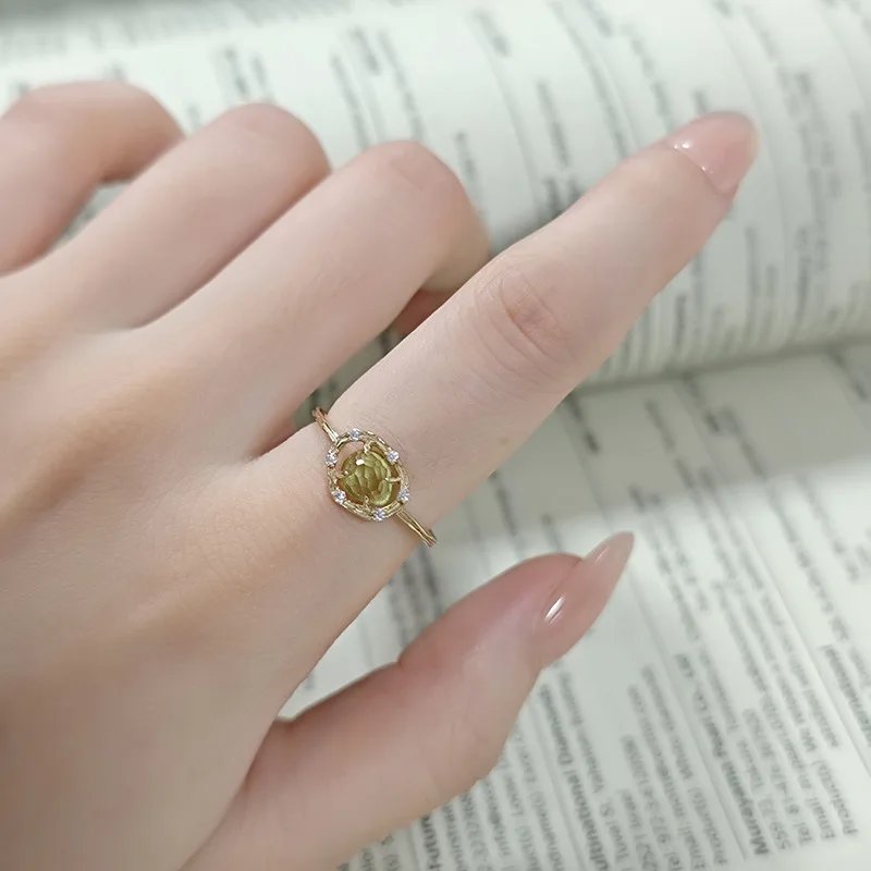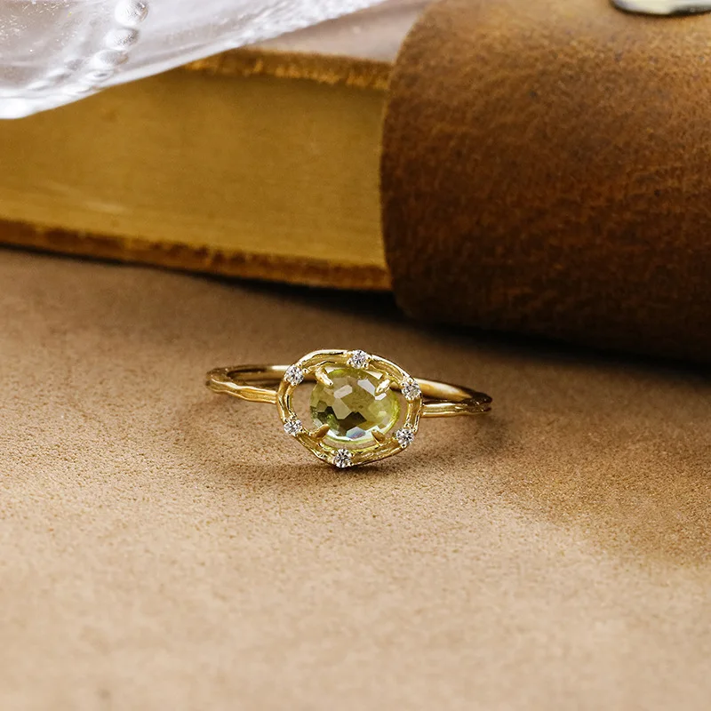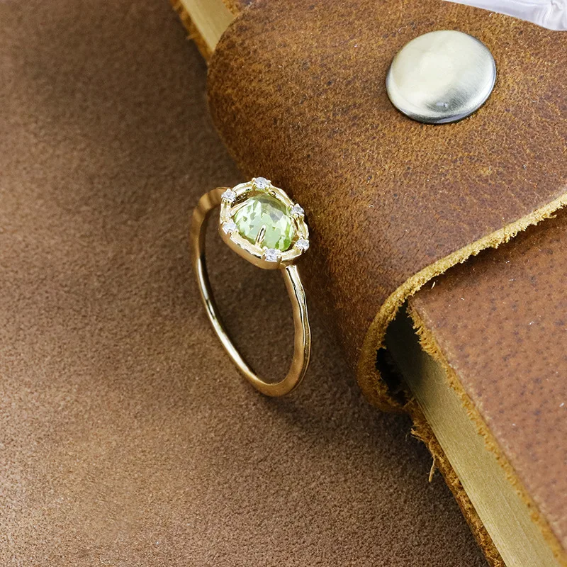 Emotional Factory 925 Sterling Silver 14K Gold Plated Gemstone Commuter Irregular Peridot White Zirconia Ring Emotional Factory 925 Sterling Silver 14K Gold Plated Gemstone Commuter Irregular Peridot White Zirconia Ring