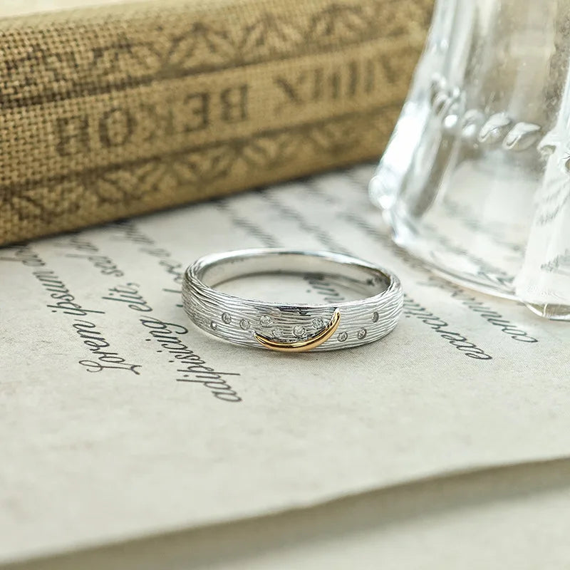 Emotional Factory 925 Sterling Silver 14K Gold Plated Gemstone Cz Zircon Bead Moon Star Ring for Women