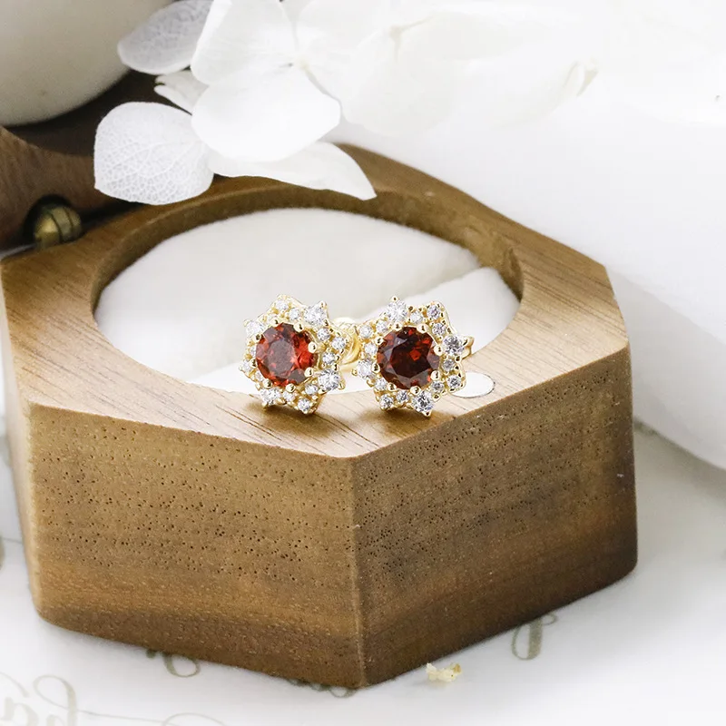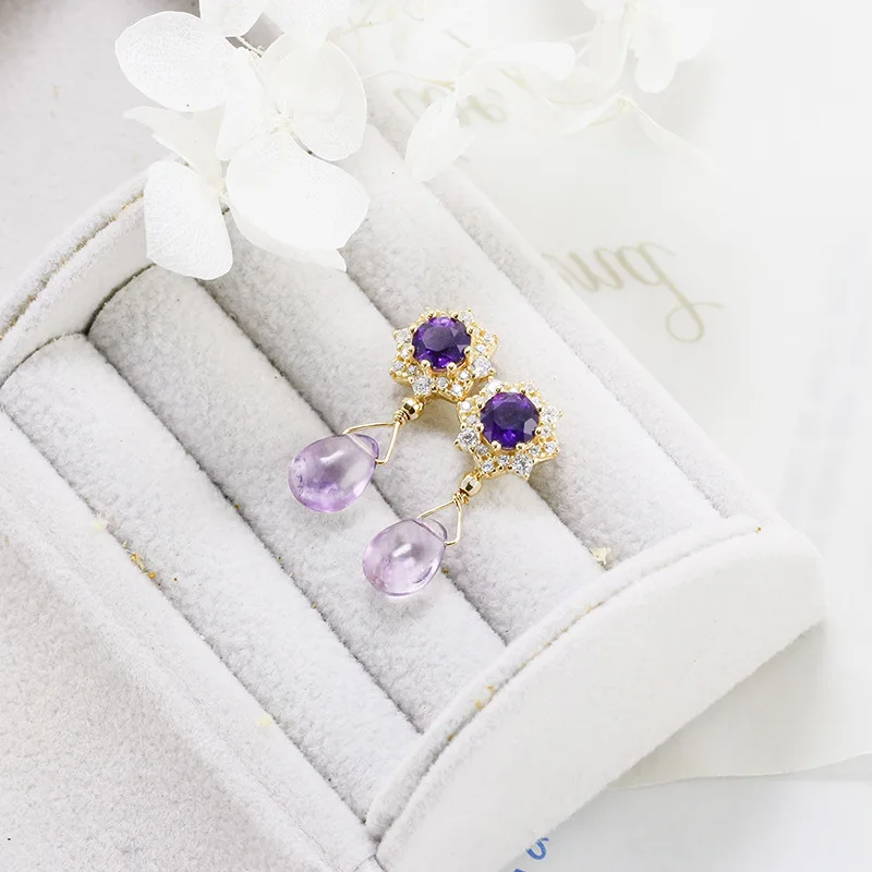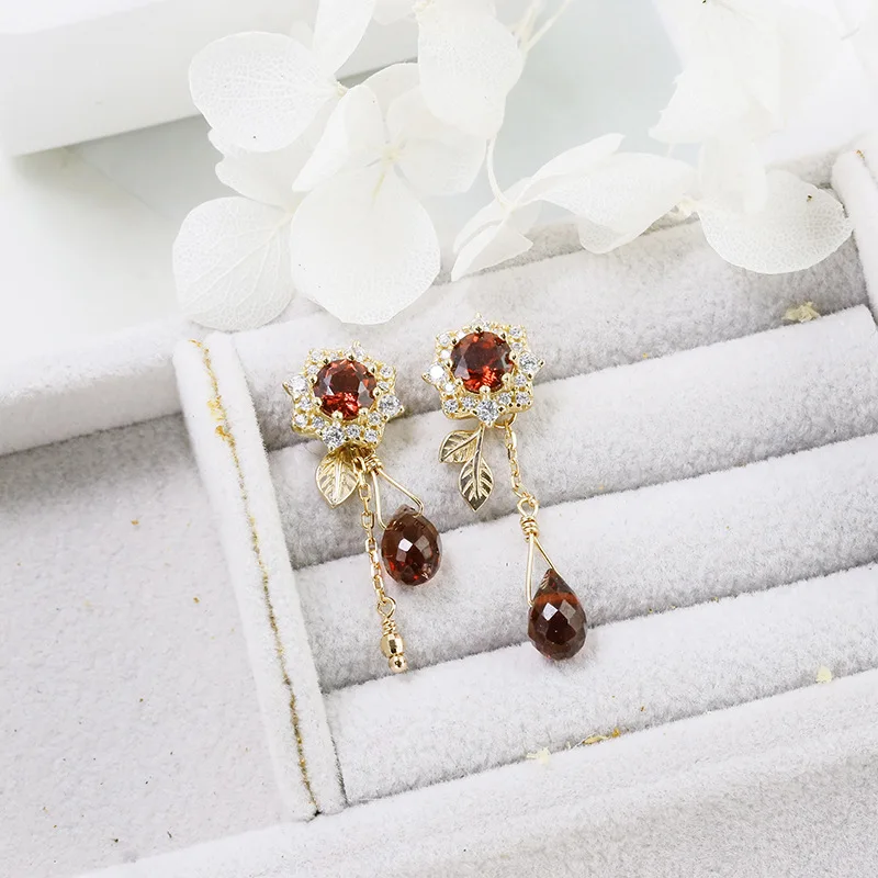 Emotional Factory 925 Sterling Silver 14K Gold Plated Gemstone Cz Zircon Flower Amethyst Garnet Earrings Emotional Factory 925 Sterling Silver 14K Gold Plated Gemstone Cz Zircon Flower Amethyst Garnet Earrings