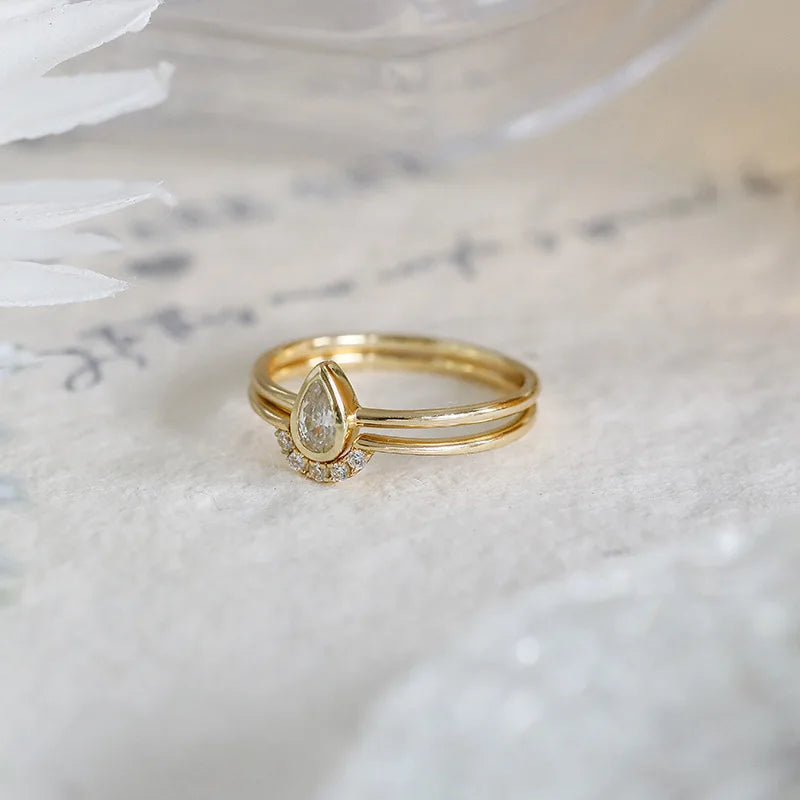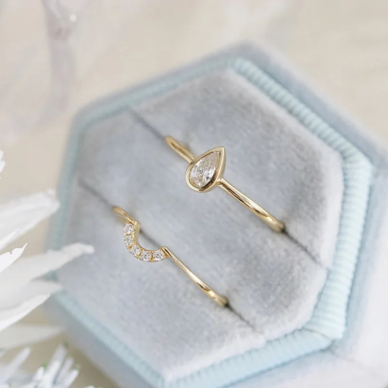 Emotional Factory 925 Sterling Silver 14K Gold Plated Gemstone Cz Zircon Stacking Teardrop Shaped Zirconia Rings Drop Ring