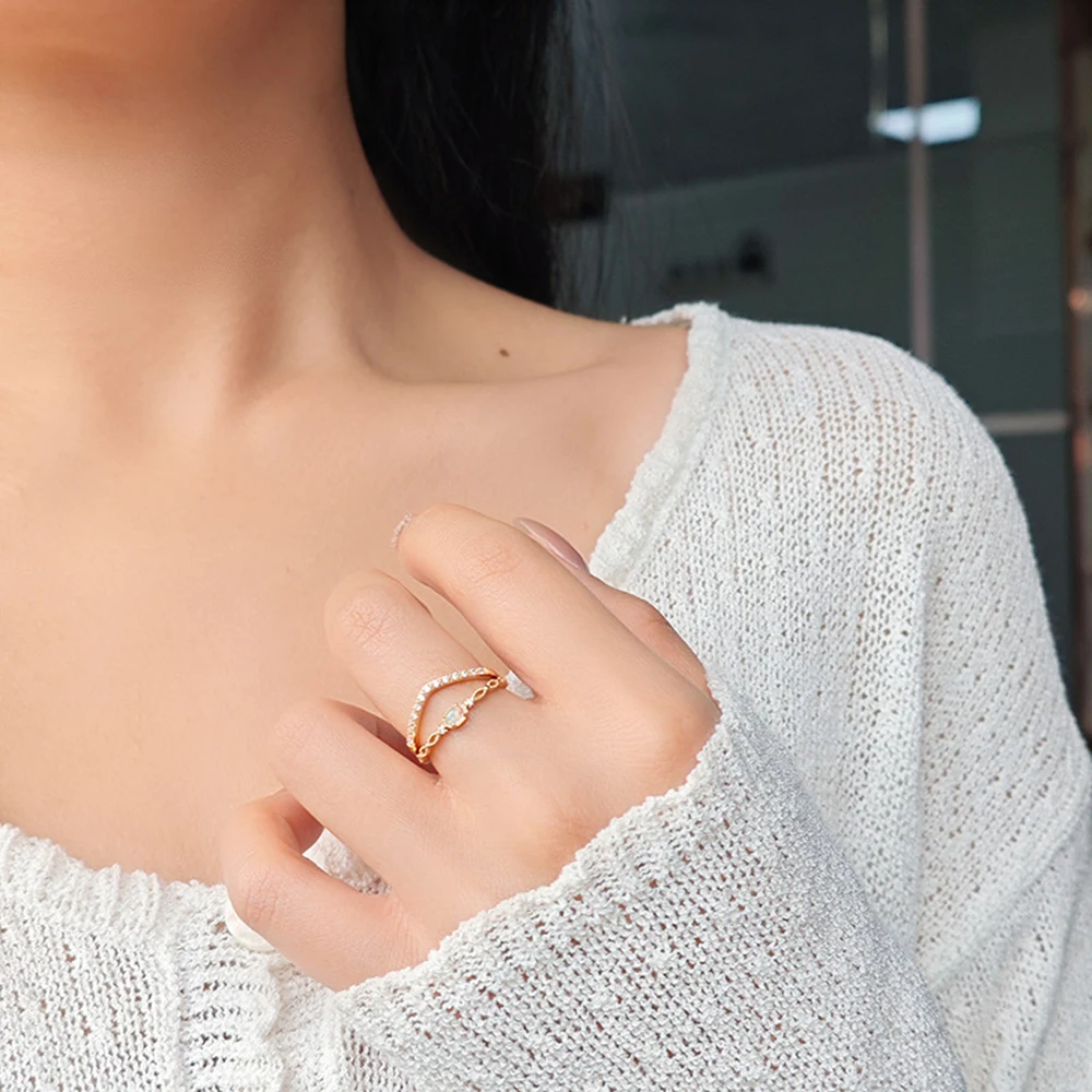 Emotional Factory 925 Sterling Silver 14K Gold Plated Gemstone Cz Zircon V Shaped Ring Stacking Rings Emotional Factory 925 Sterling Silver 14K Gold Plated Gemstone Cz Zircon V Shaped Ring Stacking Rings
