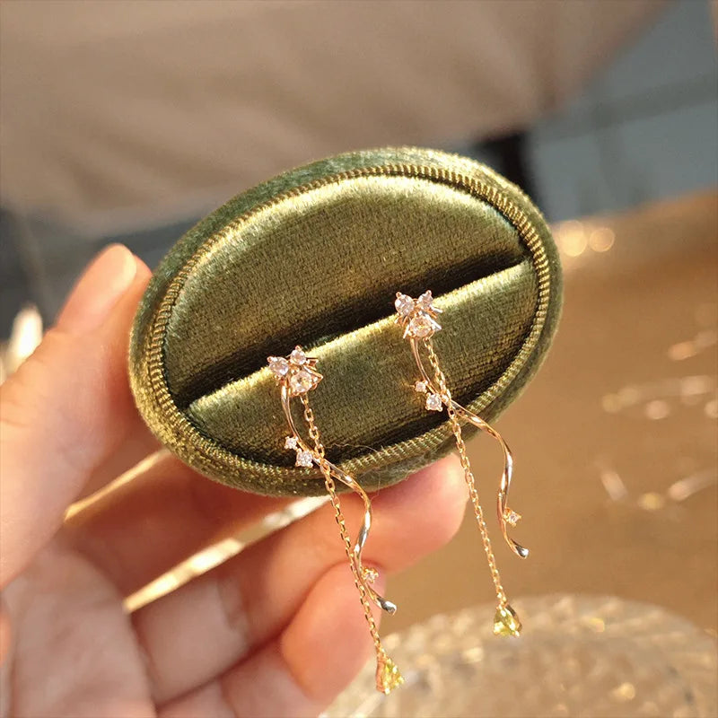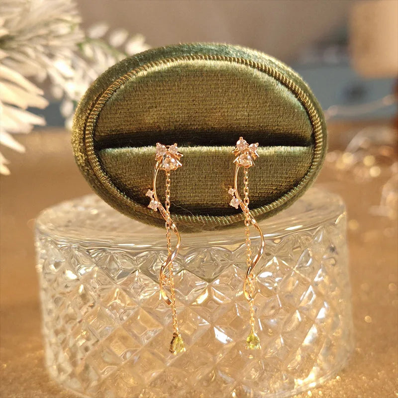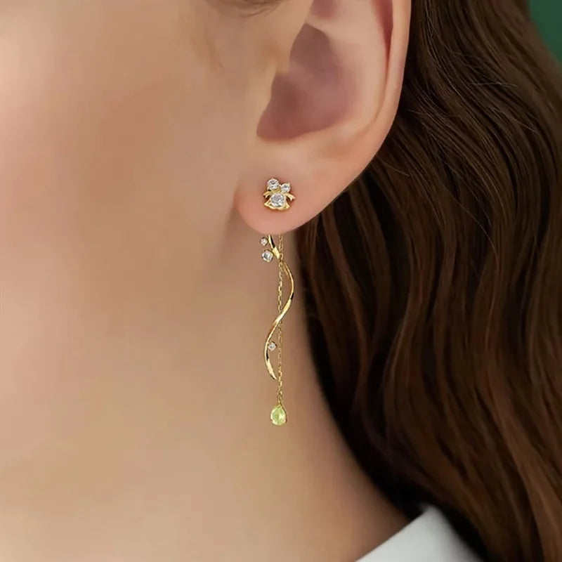Emotional Factory 925 Sterling Silver 14K Gold Plated Gemstone Diopside Peridot Tassels Earrings