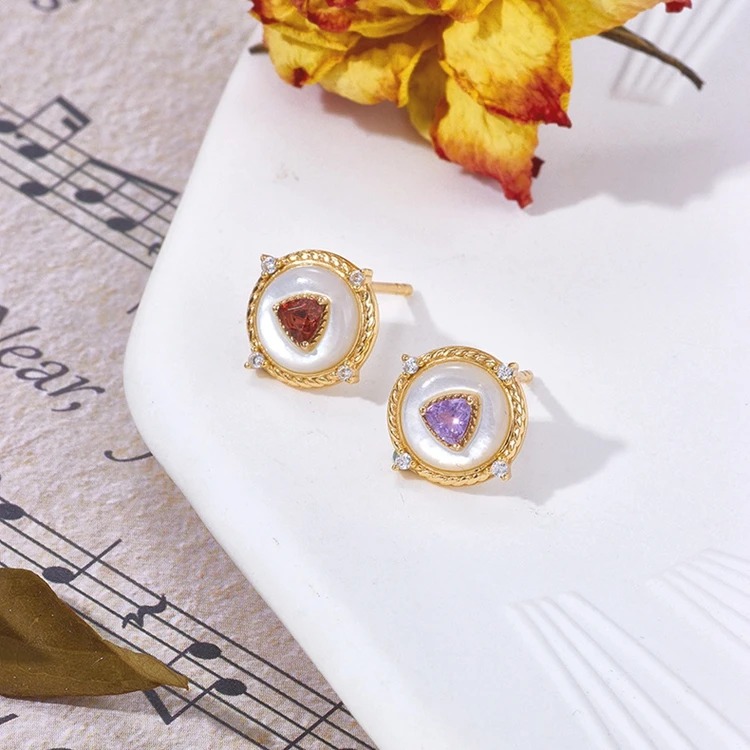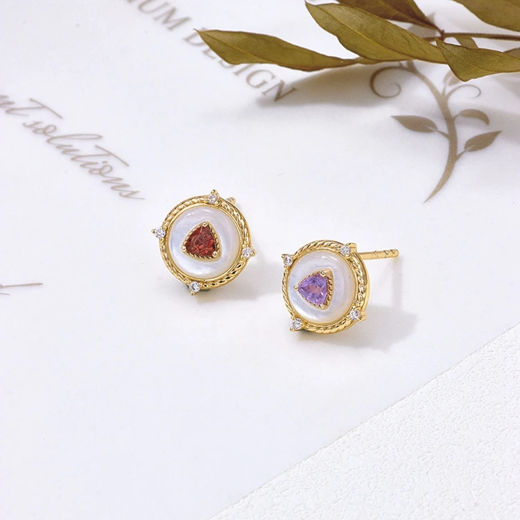 Emotional Factory 925 Sterling Silver 14K Gold Plated Gemstone Evil Eyes Red Garnet Amethyst Earrings Emotional Factory 925 Sterling Silver 14K Gold Plated Gemstone Evil Eyes Red Garnet Amethyst Earrings