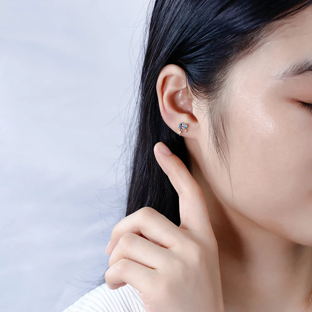 Gemstone Gem Natural Swiss Blue Topaz Star Stud Earrings