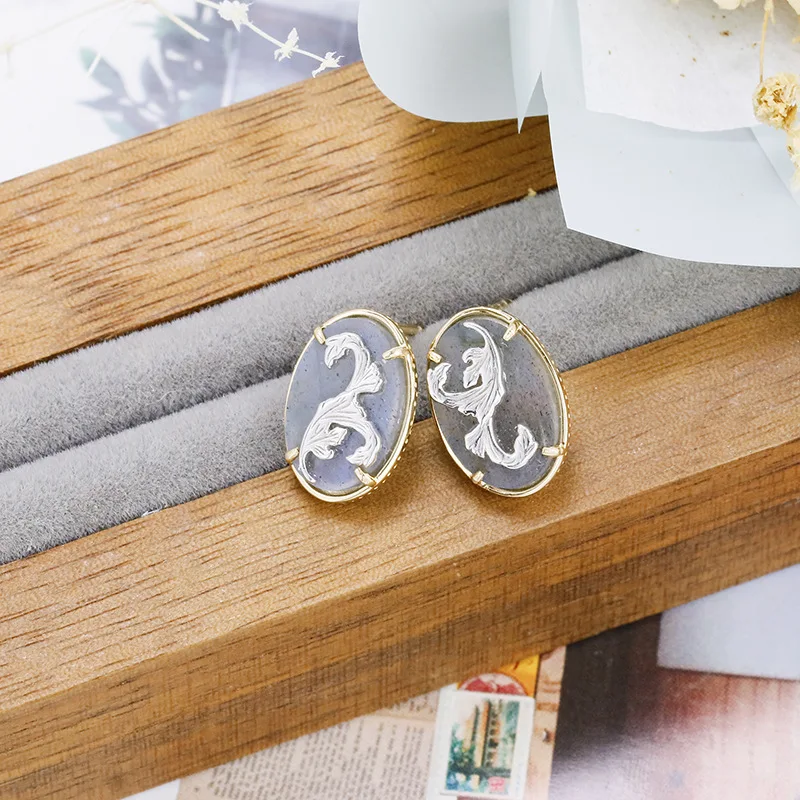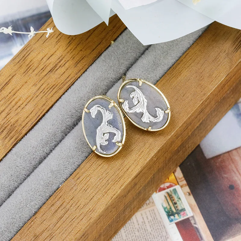 Emotional Factory 925 Sterling Silver 14K Gold Plated Gemstone Geometric Round Grassy Labradorite Earrings Emotional Factory 925 Sterling Silver 14K Gold Plated Gemstone Geometric Round Grassy Labradorite Earrings