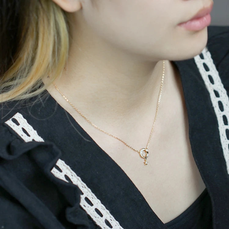 Emotional Factory 925 Sterling Silver 14K Gold Plated Gemstone Gypsophila Moon Star Zircon Necklace