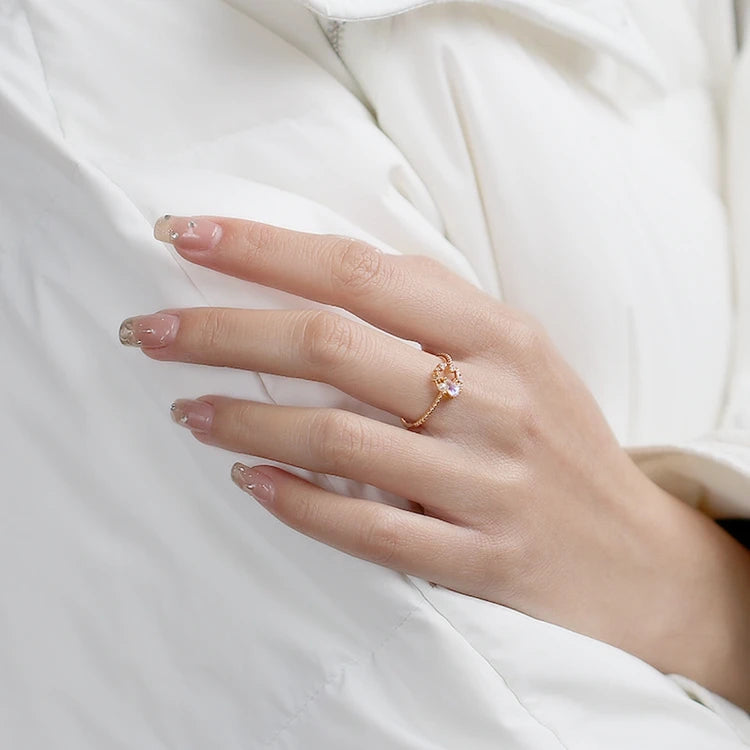 Emotional Factory 925 Sterling Silver 14K Gold Plated Gemstone Hollow Star Blue Quartz Stone Ring