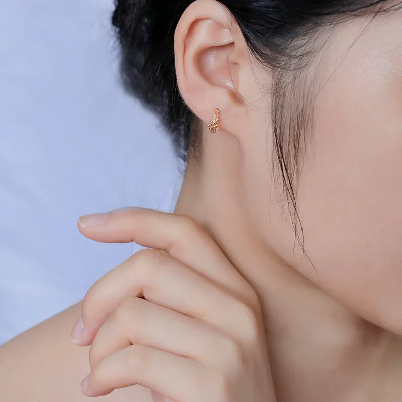Emotional Factory 925 Sterling Silver 14K Gold Plated Gemstone Hollow Vintage Cross Pentagram Sparkling Rays Hoop Earrings