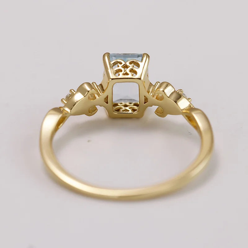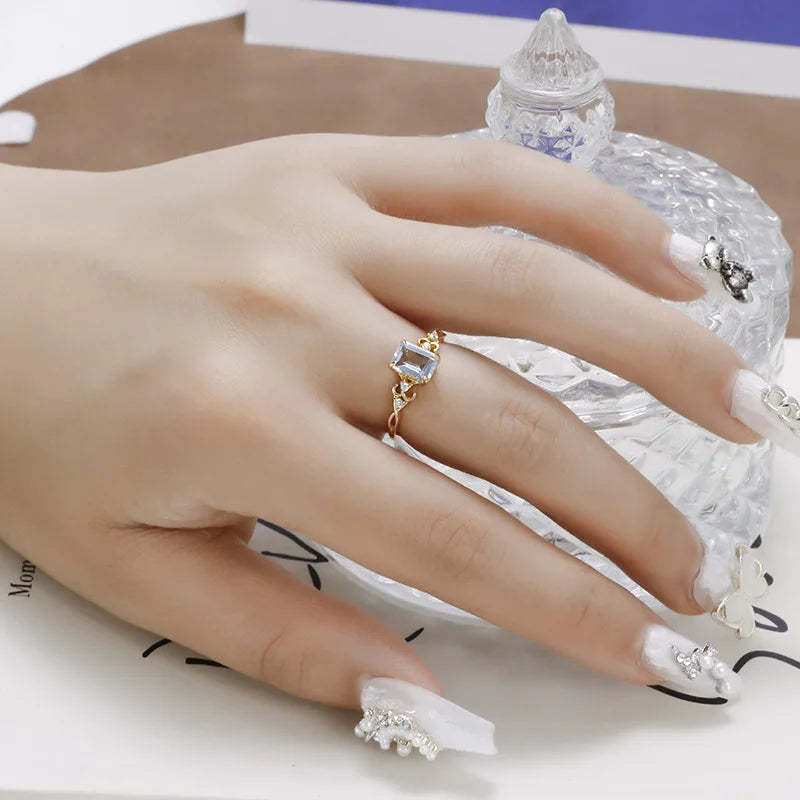 Emotional Factory 925 Sterling Silver 14K Gold Plated Gemstone Ins Geometric Square Sky Blue Zirconia Ring