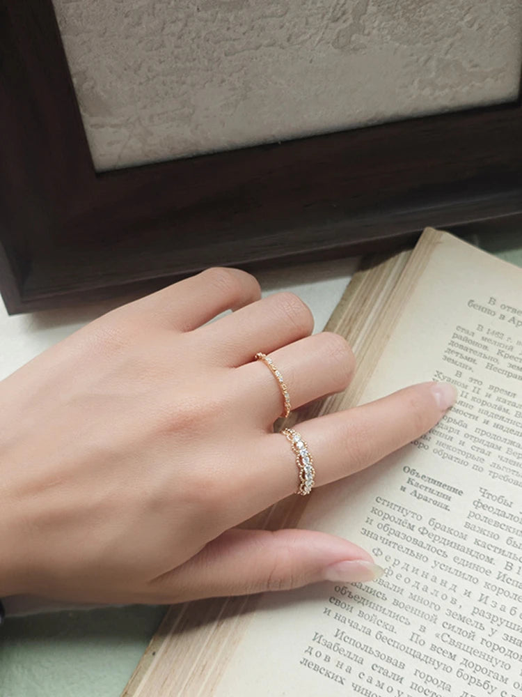 Emotional Factory 925 Sterling Silver 14K Gold Plated Gemstone Lace Cutout Patterned Glitter Moissanite Ring