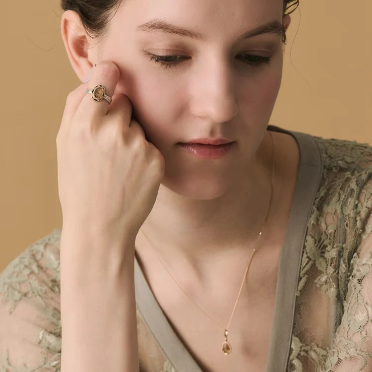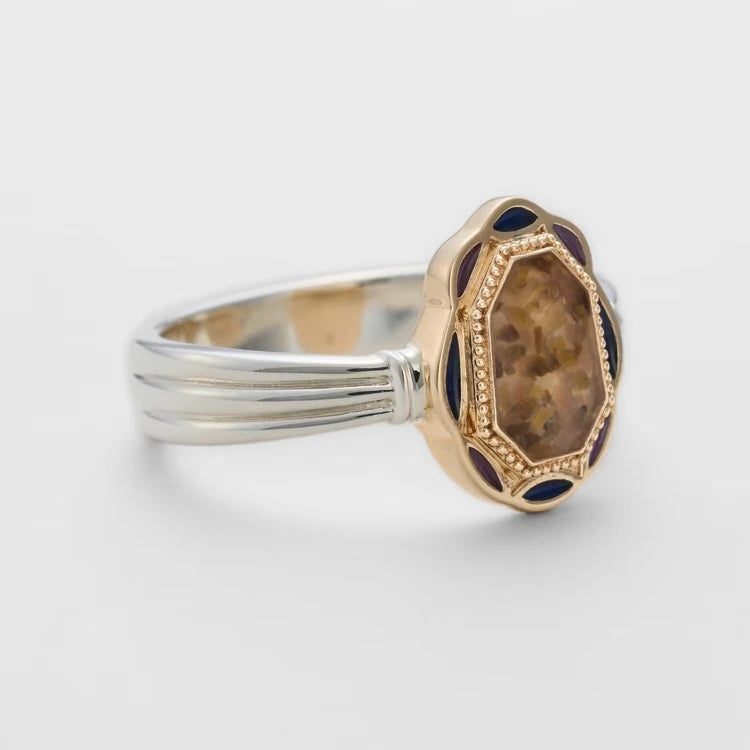 Emotional Factory 925 Sterling Silver 14K Gold Plated Gemstone Layered Two-Colour Plating Vintage Irregular Enamel Ring