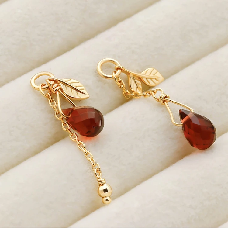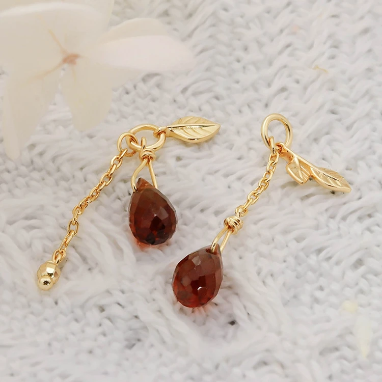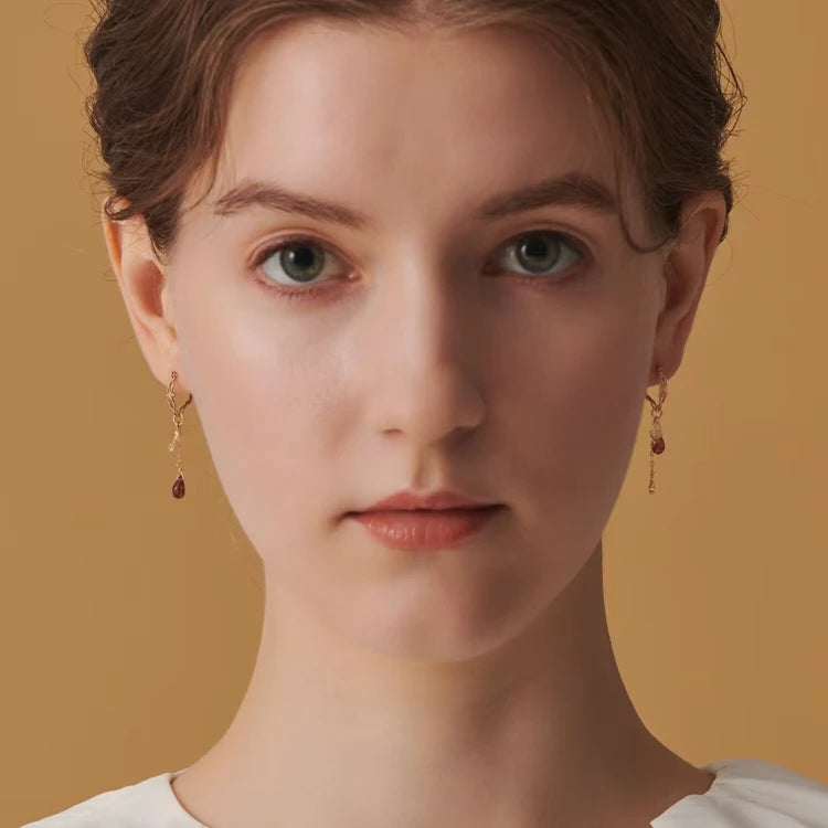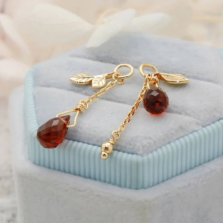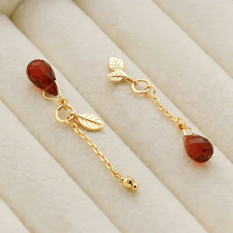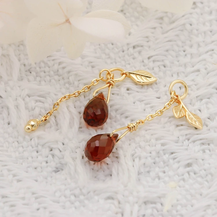 Emotional Factory 925 Sterling Silver 14K Gold Plated Gemstone Leaf Drops Seeds Red Garnet Earrings Emotional Factory 925 Sterling Silver 14K Gold Plated Gemstone Leaf Drops Seeds Red Garnet Earrings