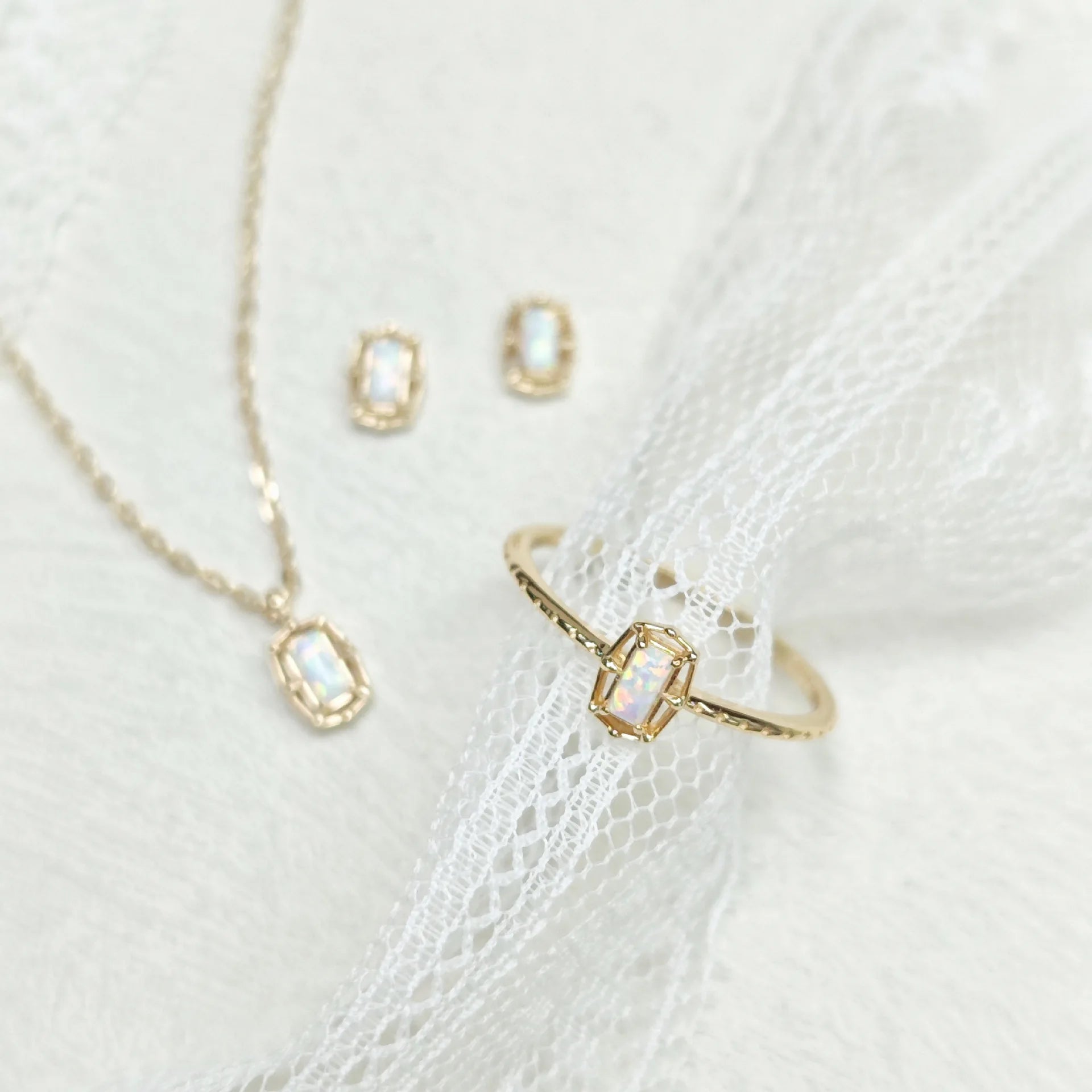 Emotional Factory 925 Sterling Silver 14K Gold Plated Gemstone Mini Geometric Flower Synthetic Opal Earrings