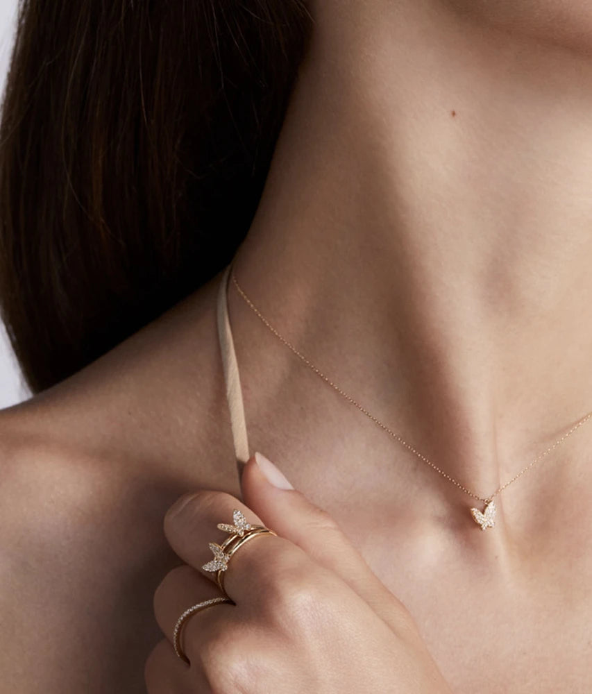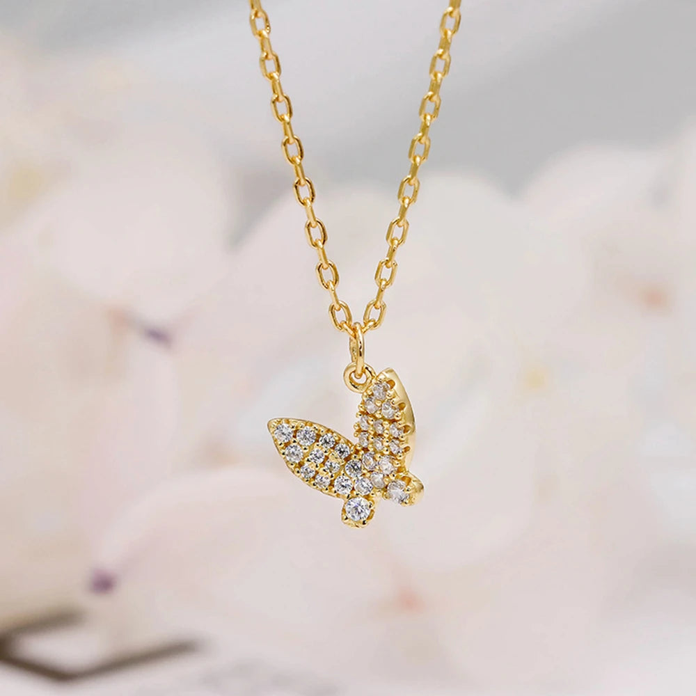 Emotional Factory 925 Sterling Silver 14K Gold Plated Gemstone Minimalist Mini Zircon Butterfly Necklace