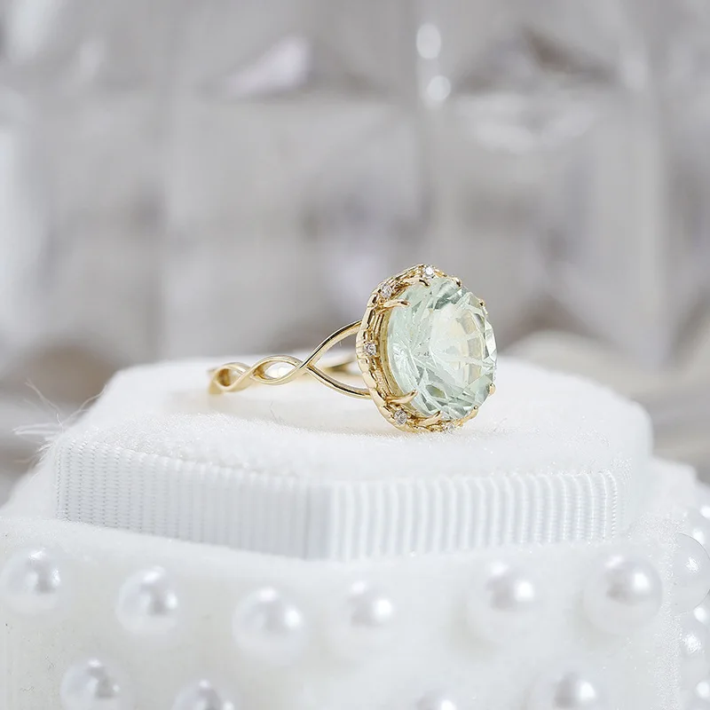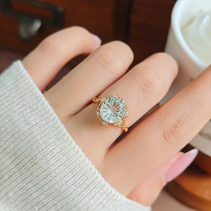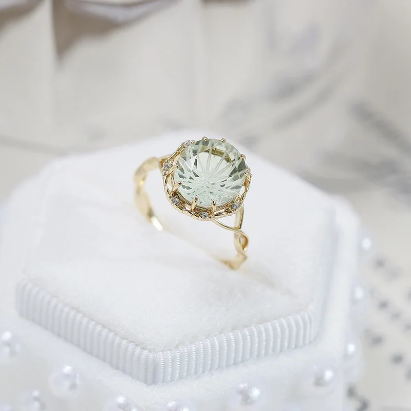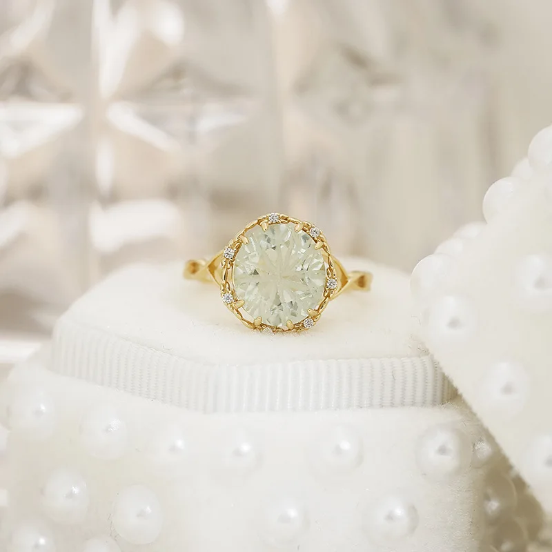 Emotional Factory 925 Sterling Silver 14K Gold Plated Gemstone Niche Design Round Carved Green Amethyst Rings Emotional Factory 925 Sterling Silver 14K Gold Plated Gemstone Niche Design Round Carved Green Amethyst Rings