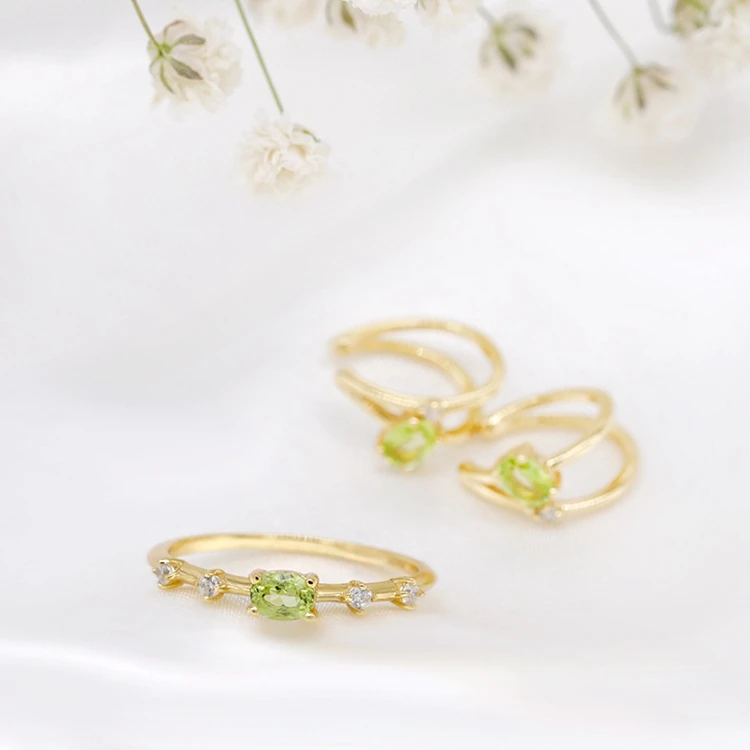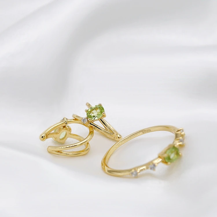Emotional Factory 925 Sterling Silver 14K Gold Plated Gemstone Olive Green Stone Ring Zircon Ear Clip Earrings Emotional Factory 925 Sterling Silver 14K Gold Plated Gemstone Olive Green Stone Ring Zircon Ear Clip Earrings
