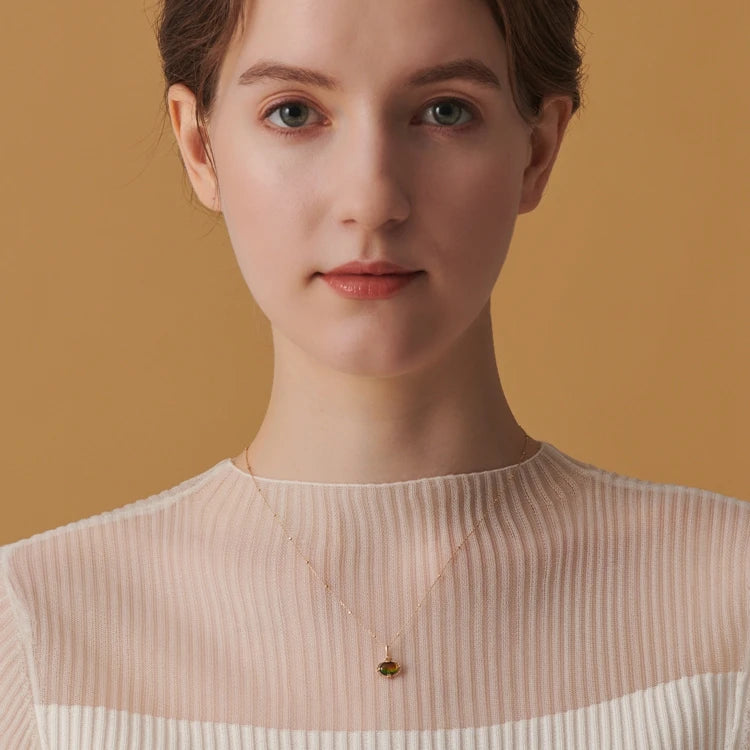 Emotional Factory 925 Sterling Silver 14K Gold Plated Gemstone Oval Natural Stone Ammolite Necklace