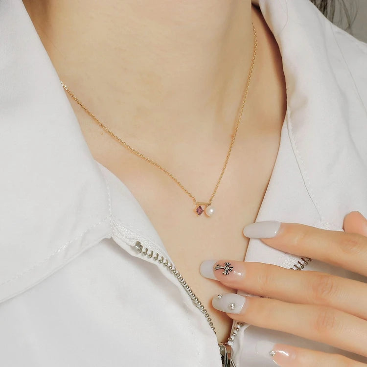 Emotional Factory 925 Sterling Silver 14K Gold Plated Gemstone Pearl Amethyst Bar Necklace