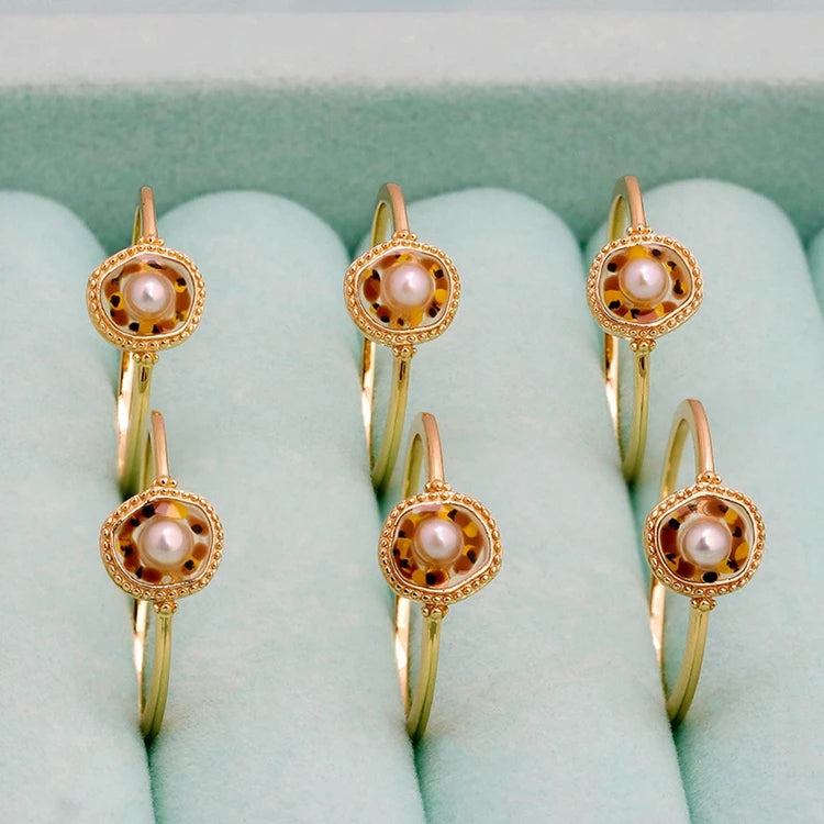 Emotional Factory 925 Sterling Silver 14K Gold Plated Gemstone Pearl Vintage Irregular Magma Enamel Ring
