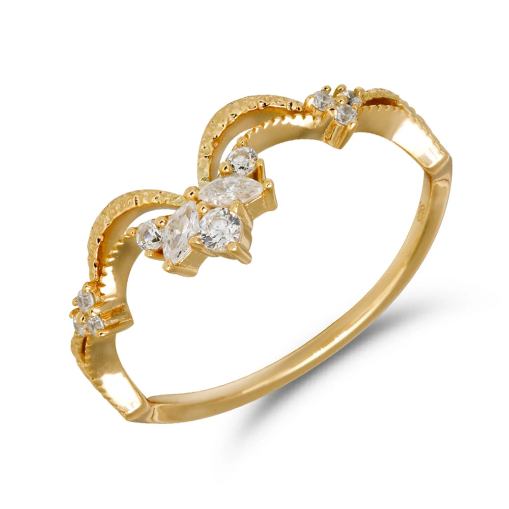 Emotional Factory 925 Sterling Silver 14K Gold Plated Gemstone Retro Cz Zircon Leaves Smiles Ring