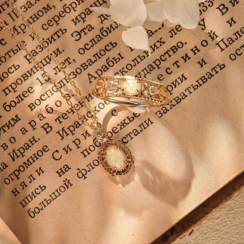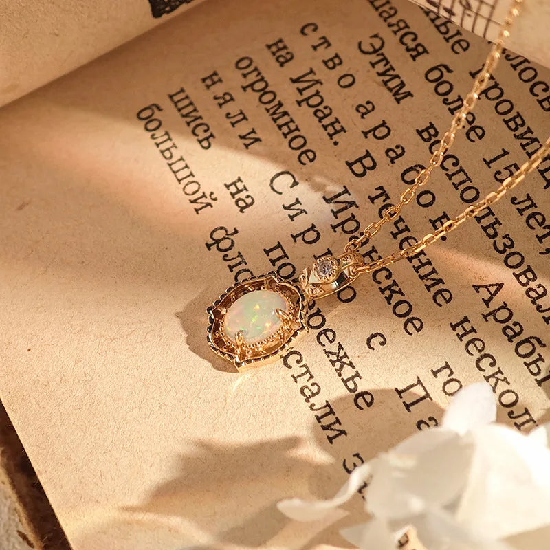 Emotional Factory 925 Sterling Silver 14K Gold Plated Gemstone Retro Hollow Opal Necklace for Women