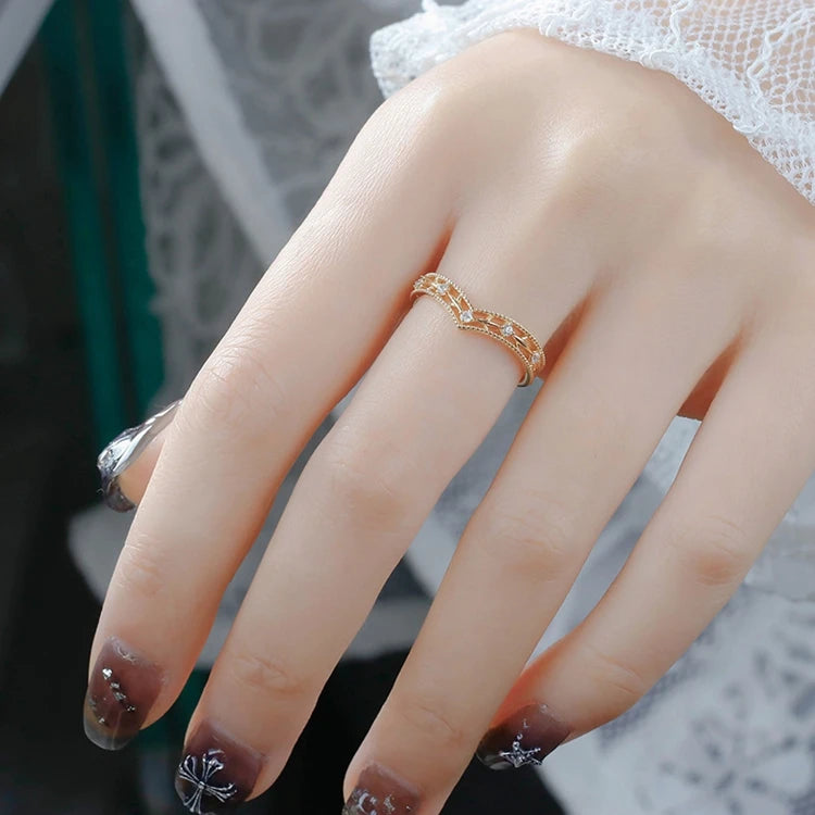 Emotional Factory 925 Sterling Silver 14K Gold Plated Gemstone Retro Hollow Zircon V Shaped Ring