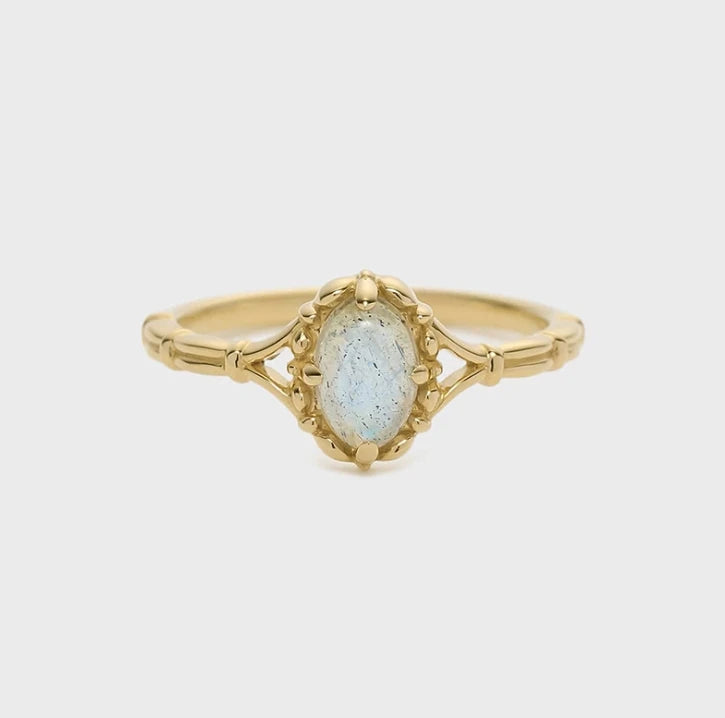 Emotional Factory 925 Sterling Silver 14K Gold Plated Gemstone Retro Literary Vintage Aquamarine Ring