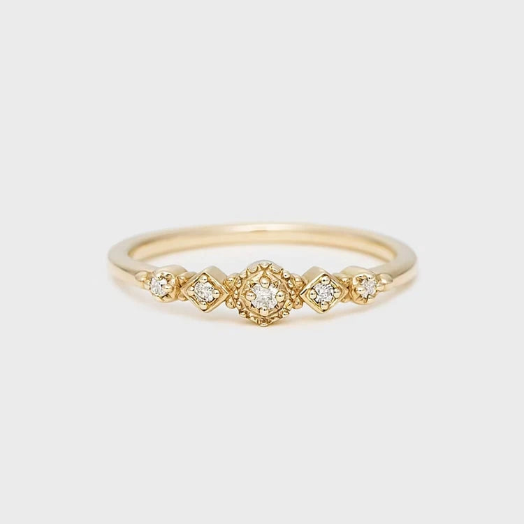 Emotional Factory 925 Sterling Silver 14K Gold Plated Gemstone Retro Vintage Cz Zircon Simple Geometric Matching Ring