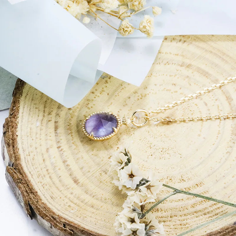 Round Amethyst Labradorite Reversible Pendant Necklace