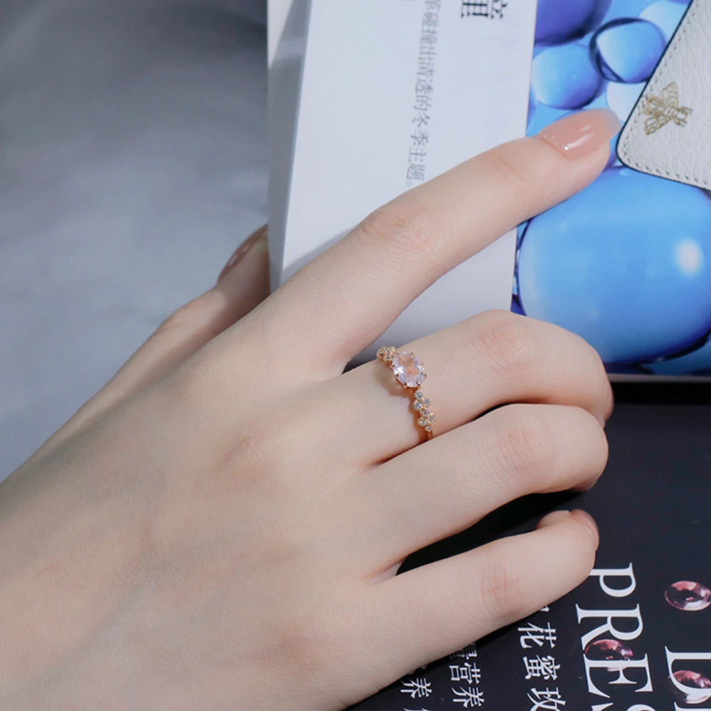 Emotional Factory 925 Sterling Silver 14K Gold Plated Gemstone Series Zircon Rose Quartz Natural Pink Crystal Ring Emotional Factory 925 Sterling Silver 14K Gold Plated Gemstone Series Zircon Rose Quartz Natural Pink Crystal Ring
