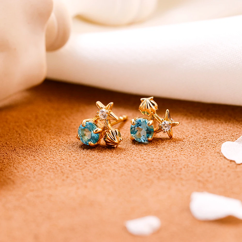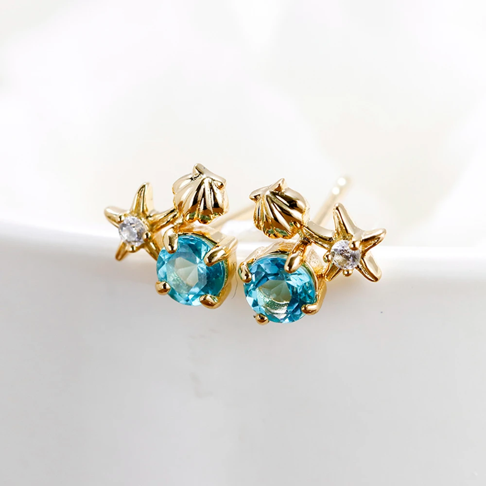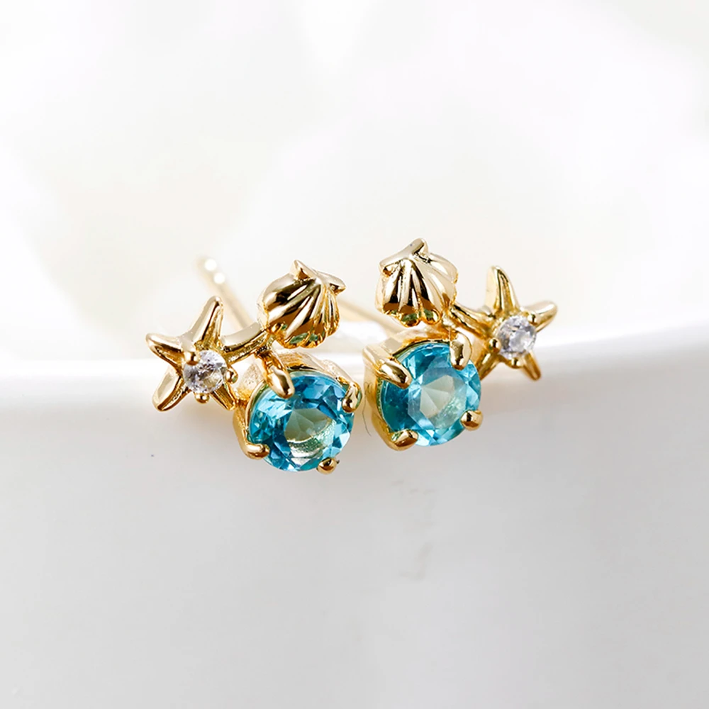 Emotional Factory 925 Sterling Silver 14K Gold Plated Gemstone Summer Star Shell Apatite Stud Earrings Emotional Factory 925 Sterling Silver 14K Gold Plated Gemstone Summer Star Shell Apatite Stud Earrings