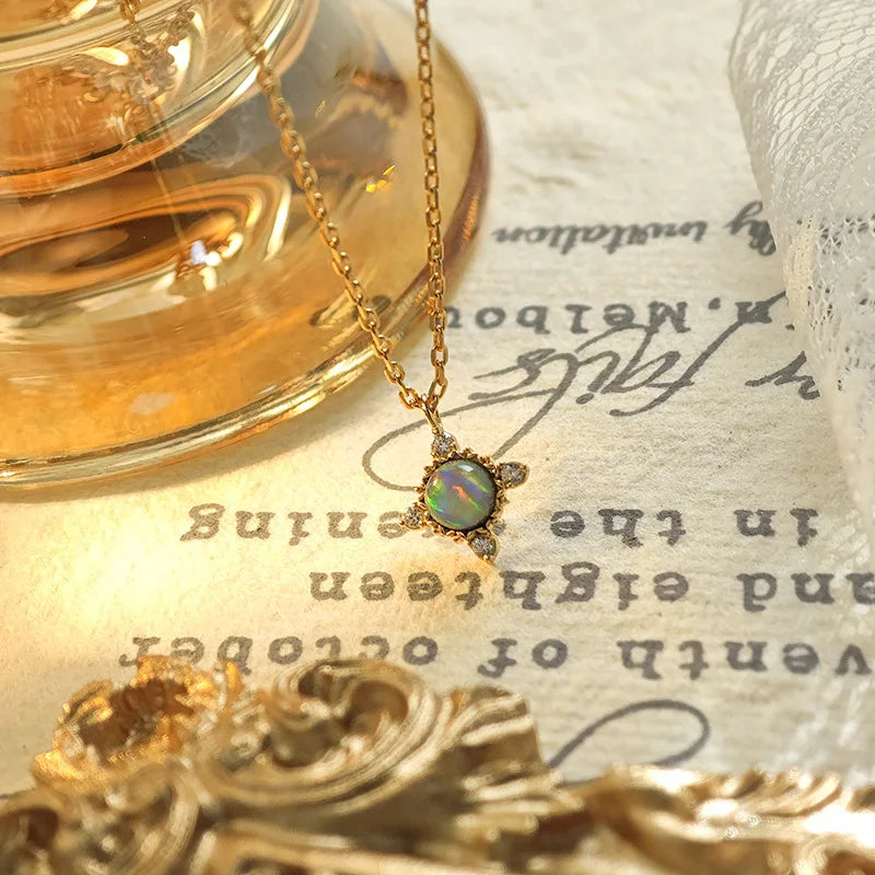 Emotional Factory 925 Sterling Silver 14K Gold Plated Gemstone Sun Sample Round Stone Vintage Fantasy Opal Necklace