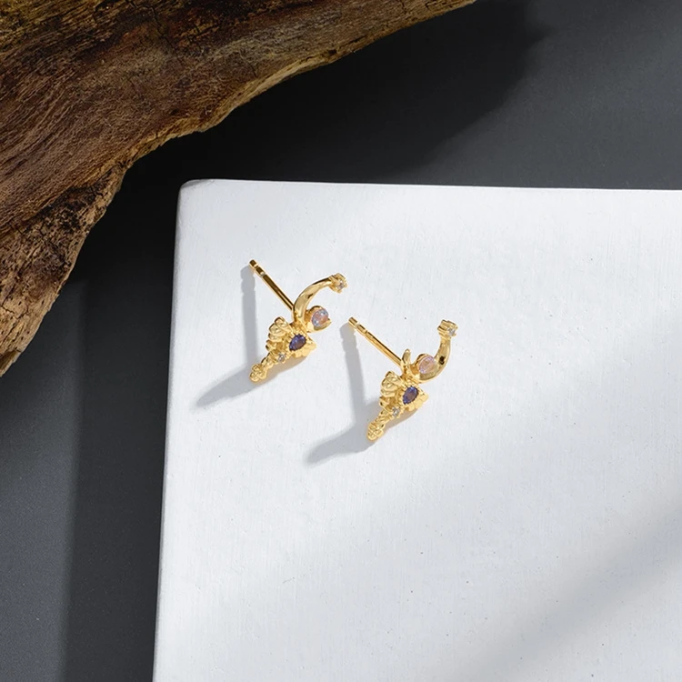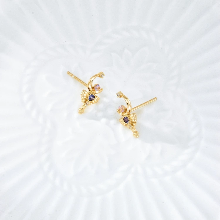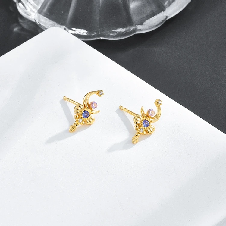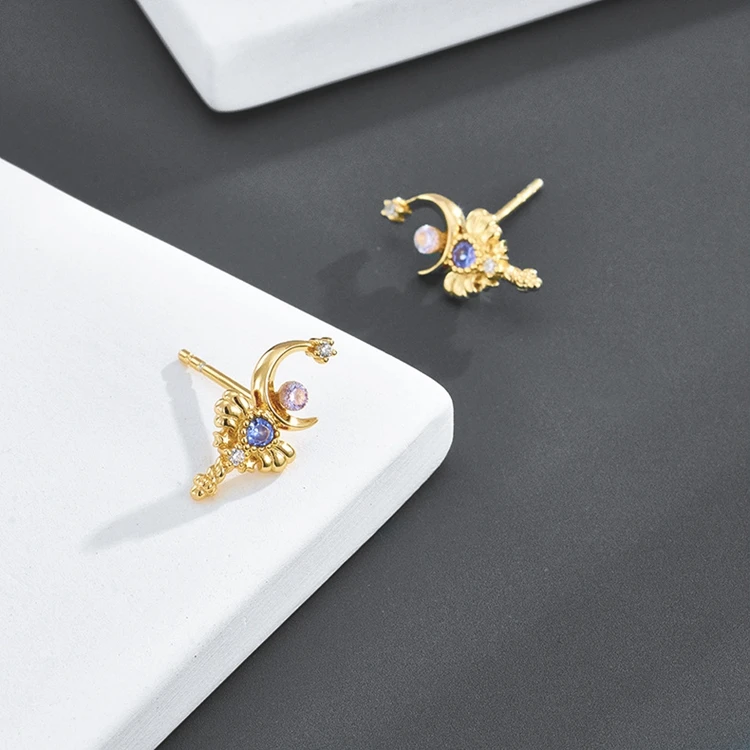 Emotional Factory 925 Sterling Silver 14K Gold Plated Gemstone Tanzanite Discoloration Zircon Magic Wand Shaped Earrings Emotional Factory 925 Sterling Silver 14K Gold Plated Gemstone Tanzanite Discoloration Zircon Magic Wand Shaped Earrings