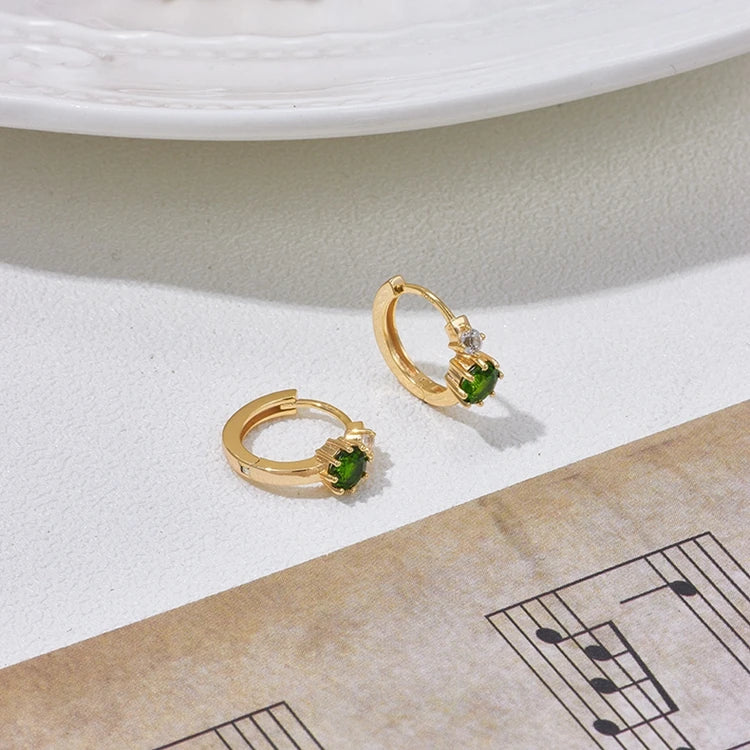 Emotional Factory 925 Sterling Silver 14K Gold Plated Gemstone Topaz Custom Stone Tonne Huggie Earrings