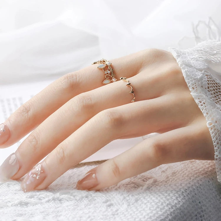 Emotional Factory 925 Sterling Silver 14K Gold Plated Gemstone Vintage Pearls Crown Opal Combination Ring