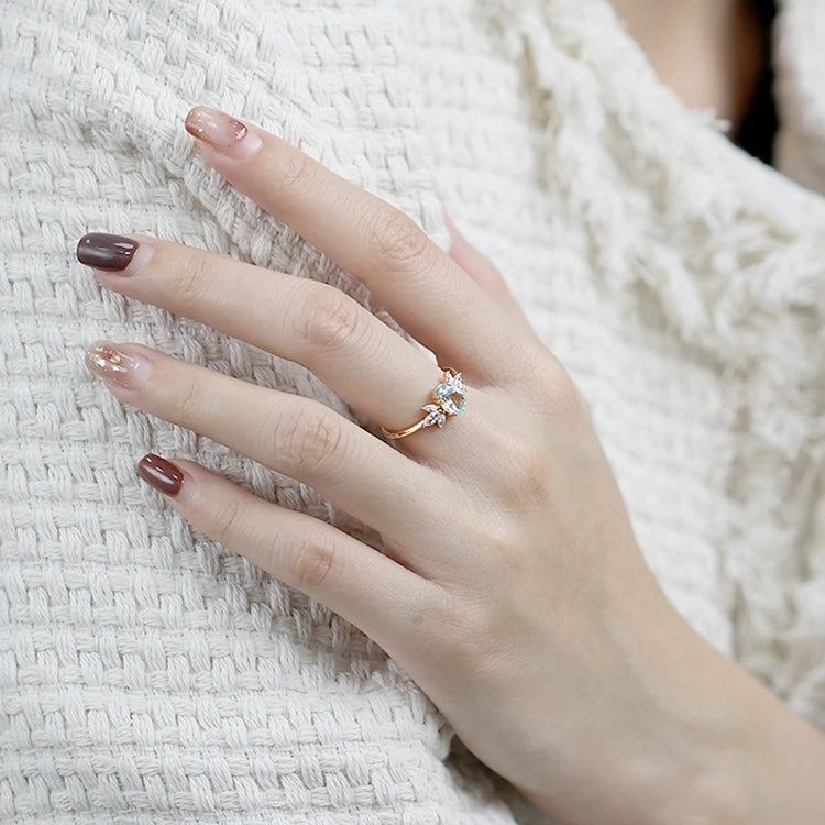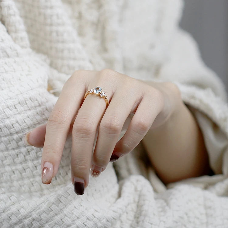 Emotional Factory 925 Sterling Silver 14K Gold Plated Gemstone Zircon Butterfly Shaped Sky Blue Natural Topaz Ring