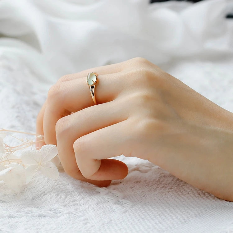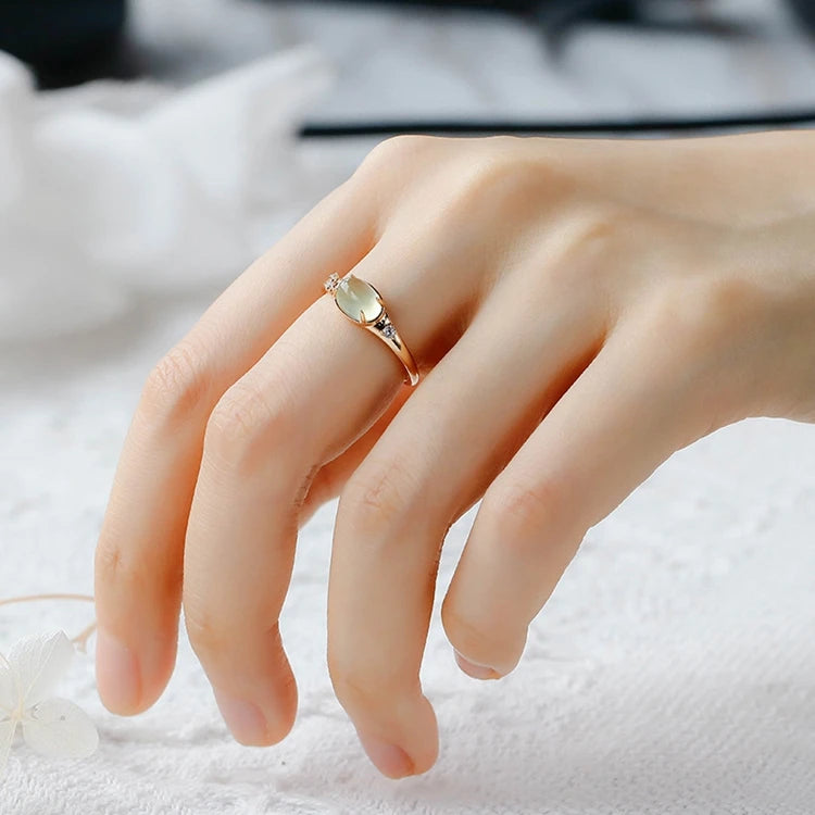 Emotional Factory 925 Sterling Silver 14K Gold Plated Gemstone Zircon Retro Vintage Oval Shaped Prehnite Ring