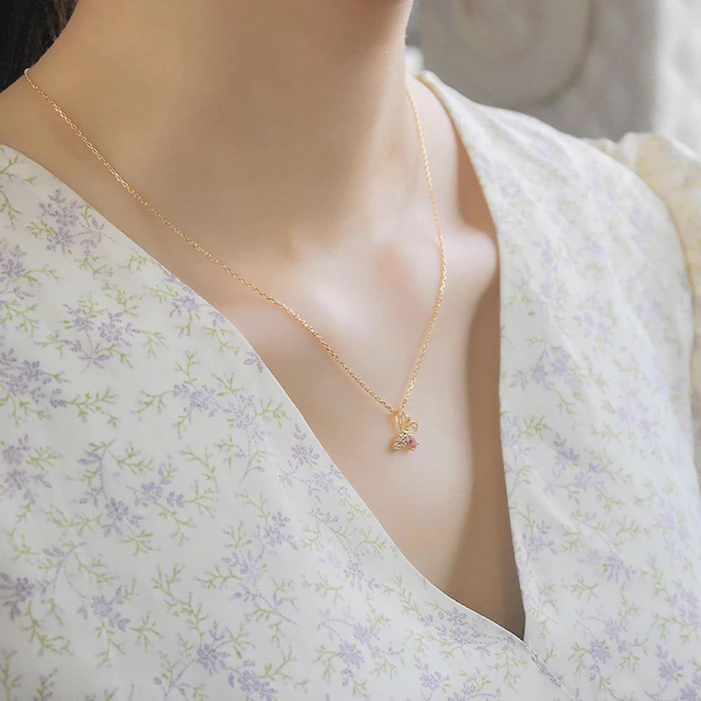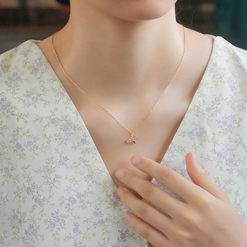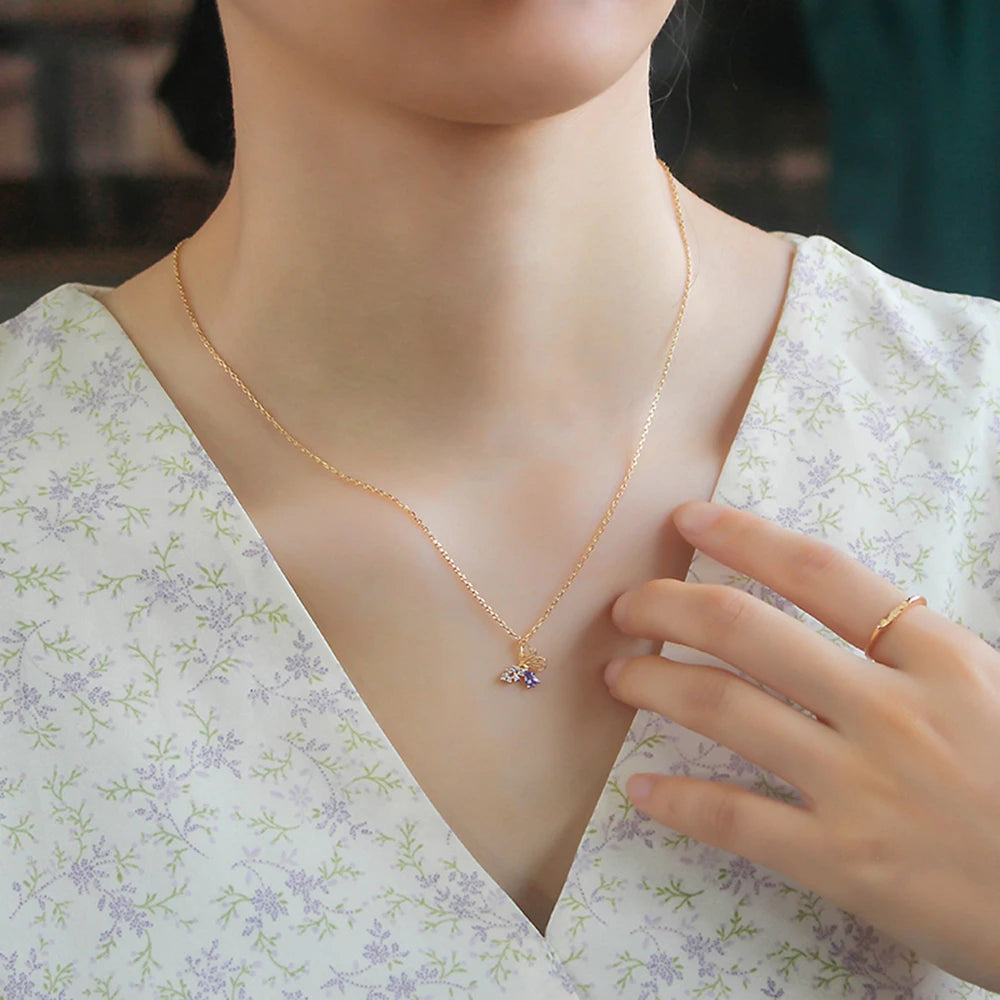 Gemstones Animals Blue Zircon Butterfly Red Corundum Stone Necklace