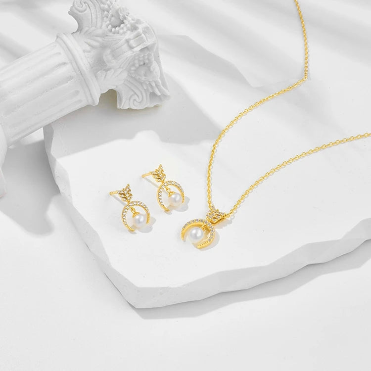 Emotional Factory 925 Sterling Silver 14K Gold Plated Gemstones Arrowhead Arrow Moon Natural Freshwater Pearl Necklace