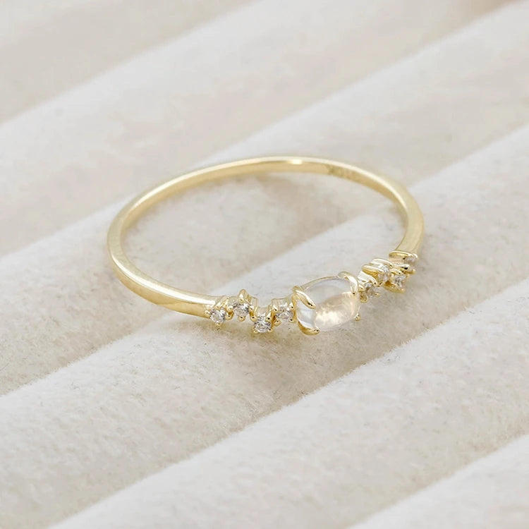 Emotional Factory 925 Sterling Silver 14K Gold Plated Gemstones Egg-Shaped Zircon Natural Blue Moonstone Ring