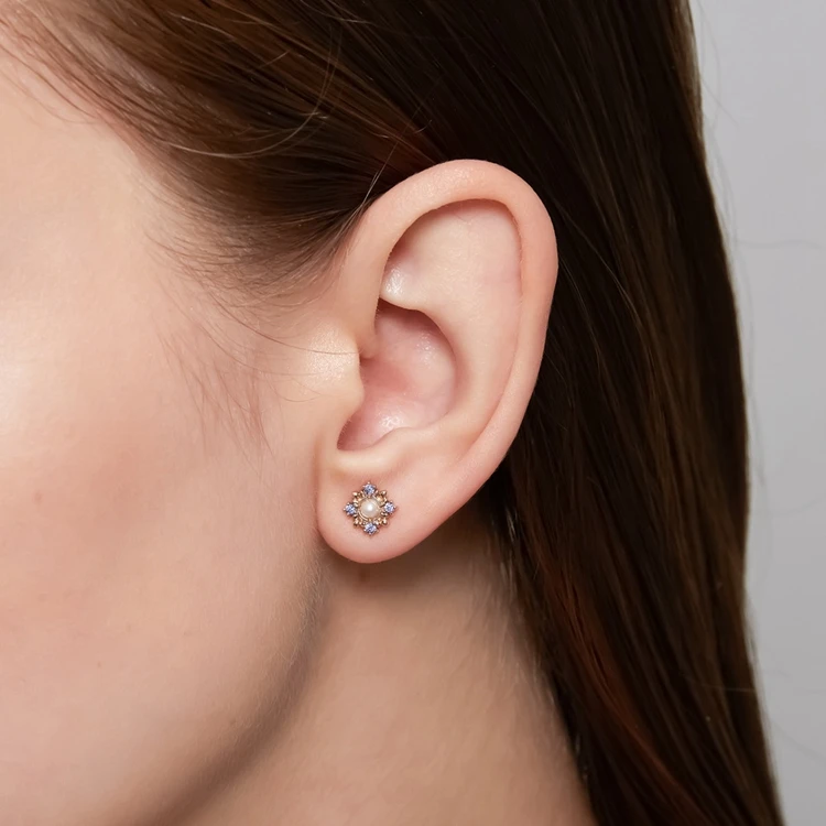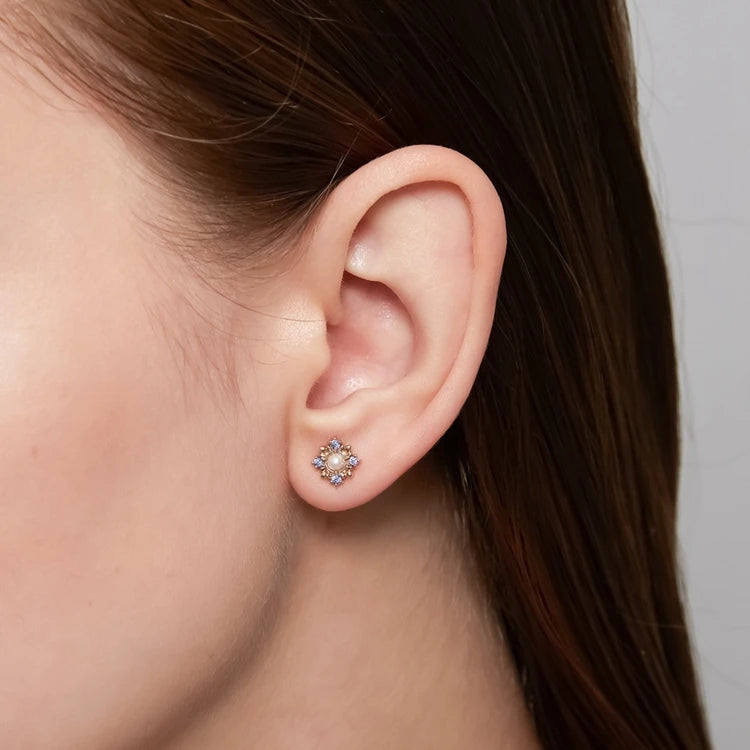 Emotional Factory 925 Sterling Silver 14K Gold Plated Gemstones Flower Rainbow Pearl Tanzanite Stone Earrings Emotional Factory 925 Sterling Silver 14K Gold Plated Gemstones Flower Rainbow Pearl Tanzanite Stone Earrings