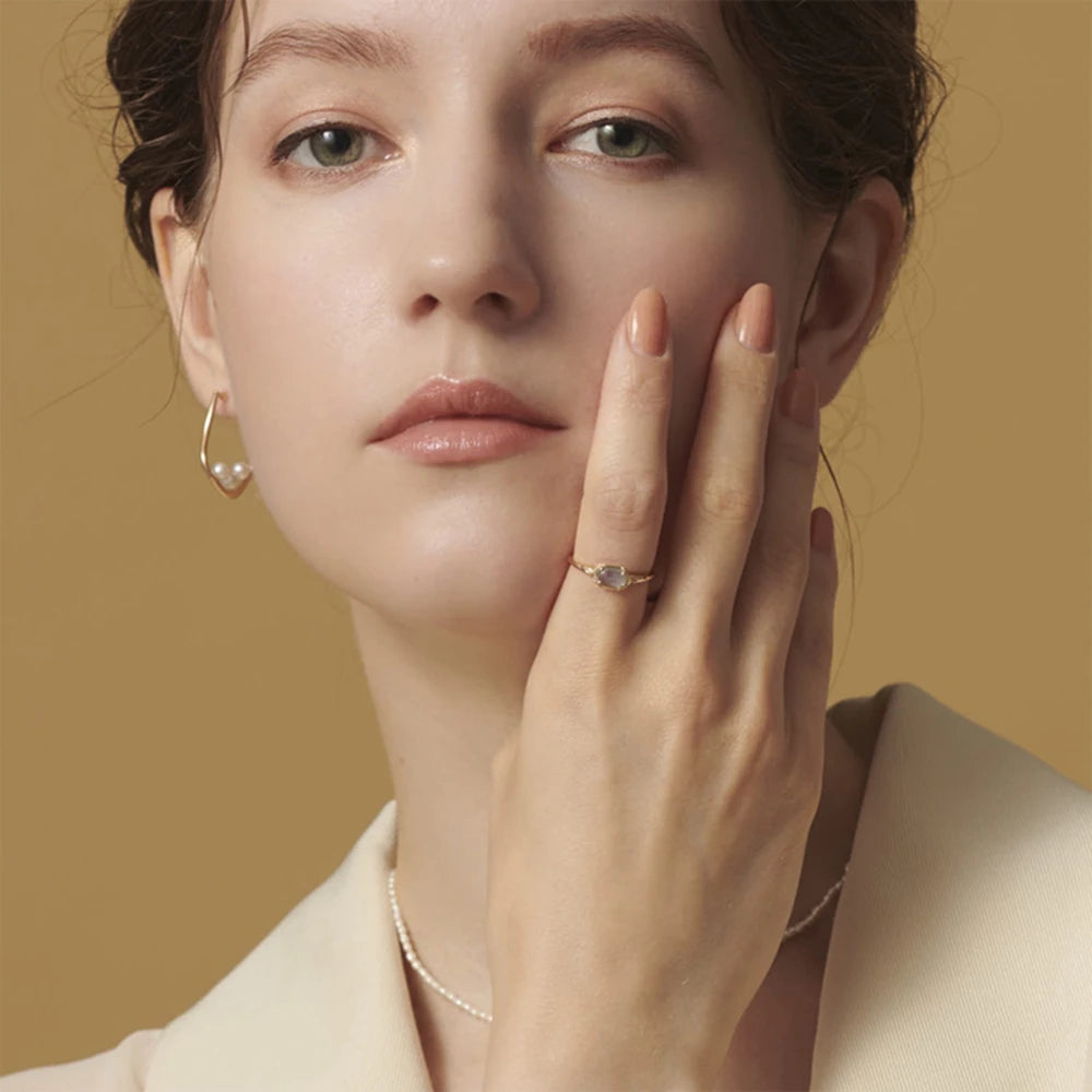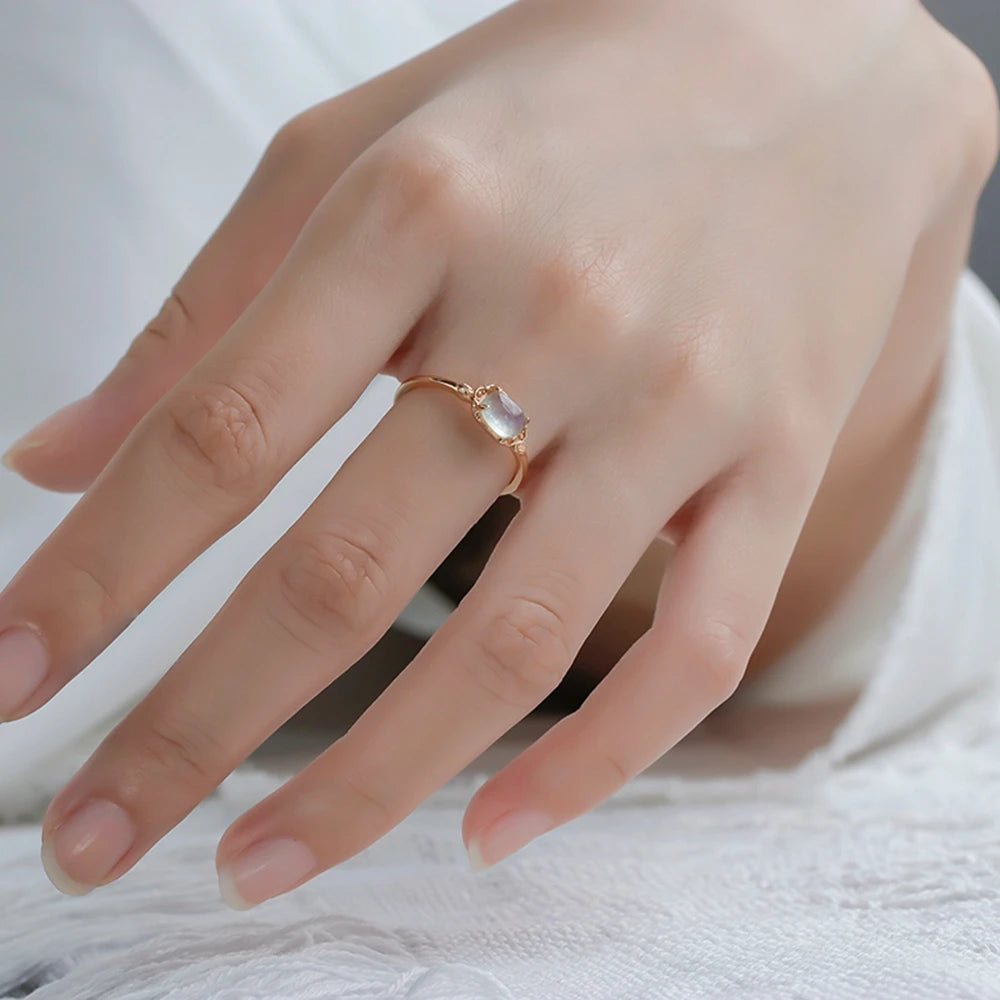 Gem Topaz Double Layer Egg Shape Natural Blue Labradorite Ring