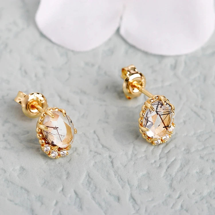 Emotional Factory 925 Sterling Silver 14K Gold Plated Gemstones Landscape Zircon Natural Black Hair Crystal Earrings