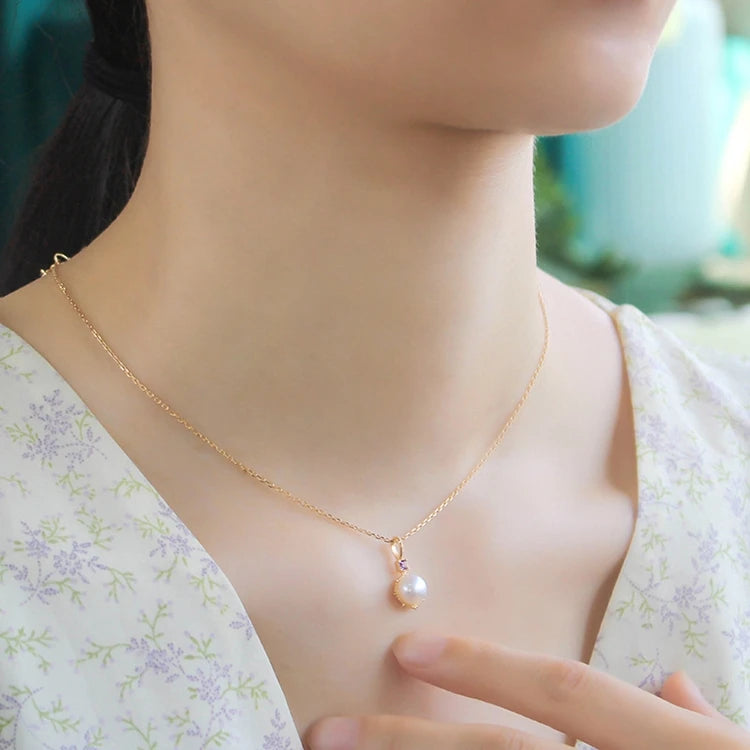 Emotional Factory 925 Sterling Silver 14K Gold Plated Gemstones Purple Crystal Amethyst Bread Pearls Necklace