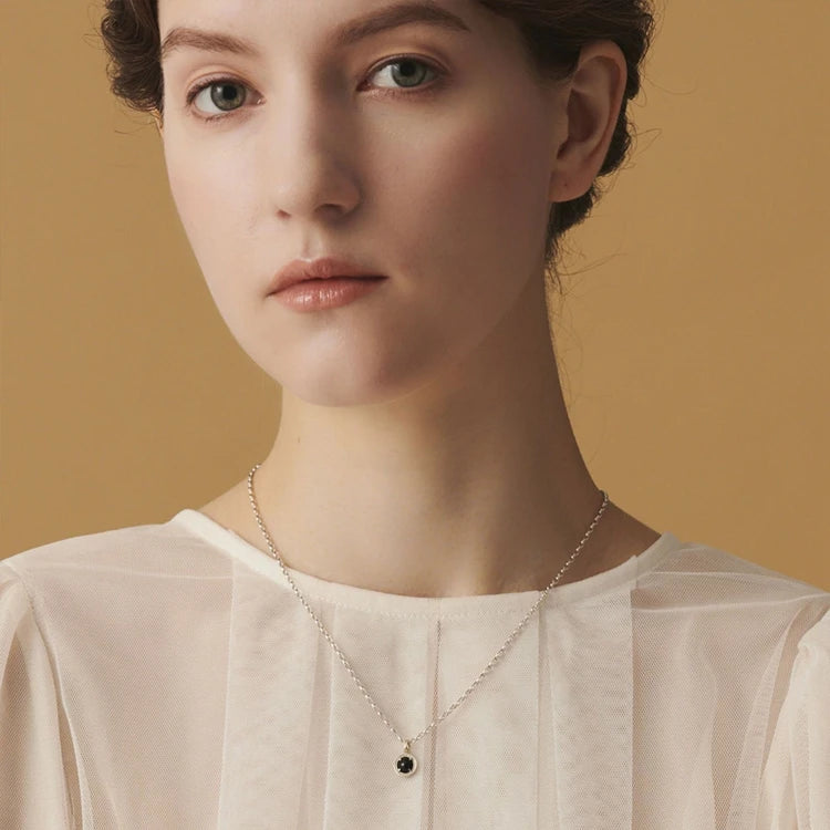 Emotional Factory 925 Sterling Silver 14K Gold Plated Gemstones Round Carved Garnet Black Onyx Necklace