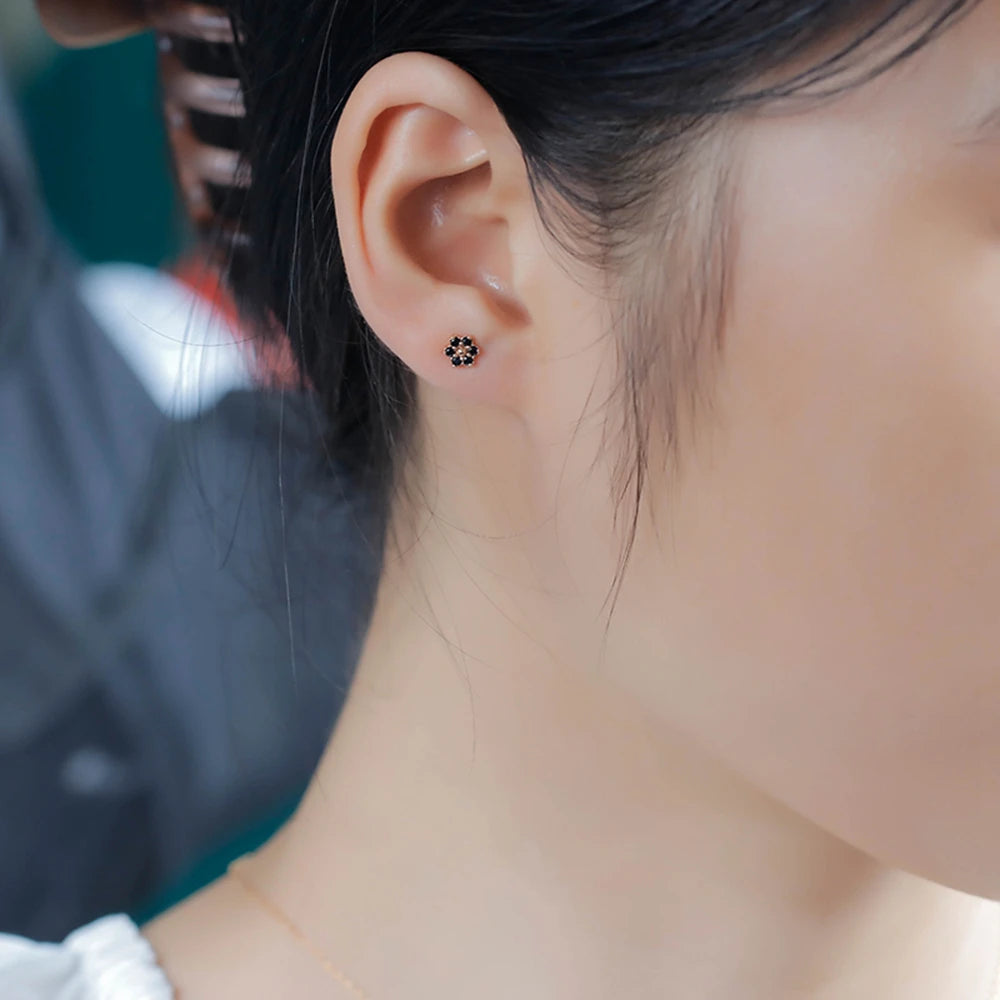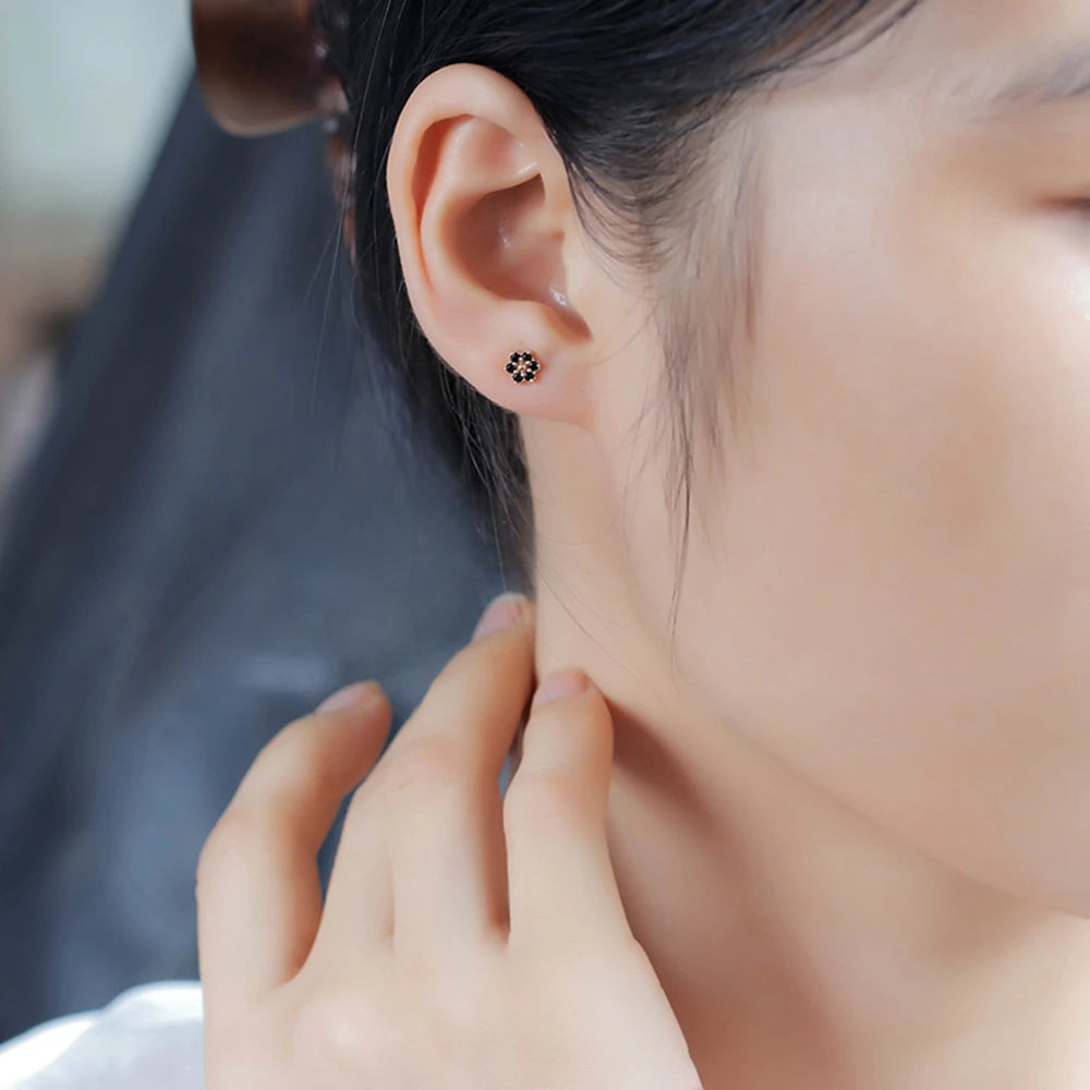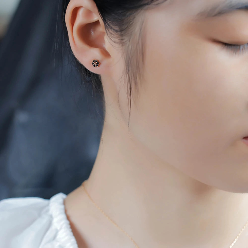 Gemstones Small Flower Twist Natural Black Onyx Earrings