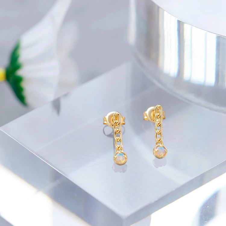 Emotional Factory 925 Sterling Silver 14K Gold Plated Gemstones Vintage Artificial Opal Simple Bead Chain Shaped Earrings